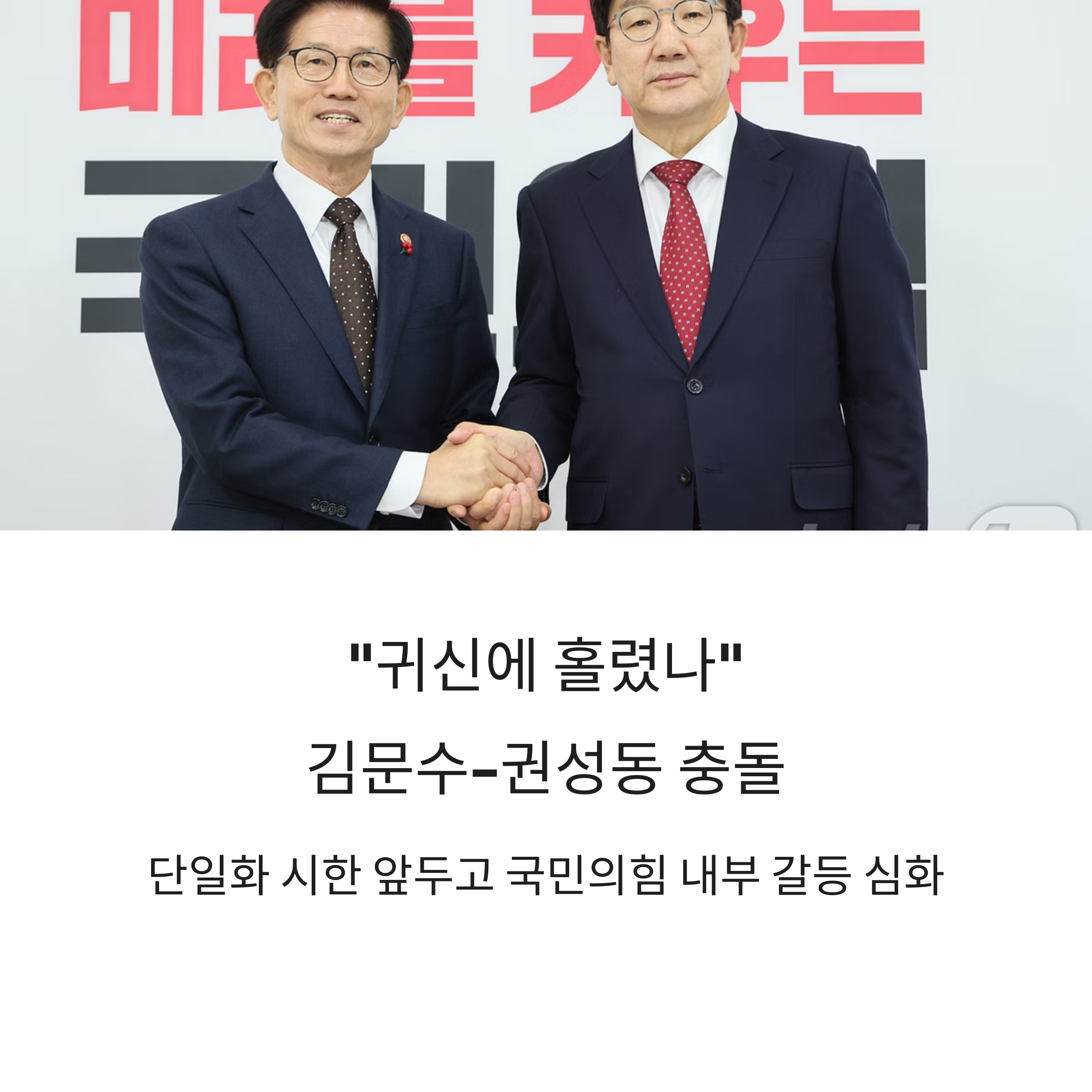 국민의힘 내부는 현재 후보(김문수) vs 당 지도부(권성동 외)의 양자 충돌 구도로 굳어지고 있습니다. 단일화 시한인 11일이 다가오면서 감정의 골은 깊어지고, 합의 가능성은 점점 희박해지는 분위기입니다.