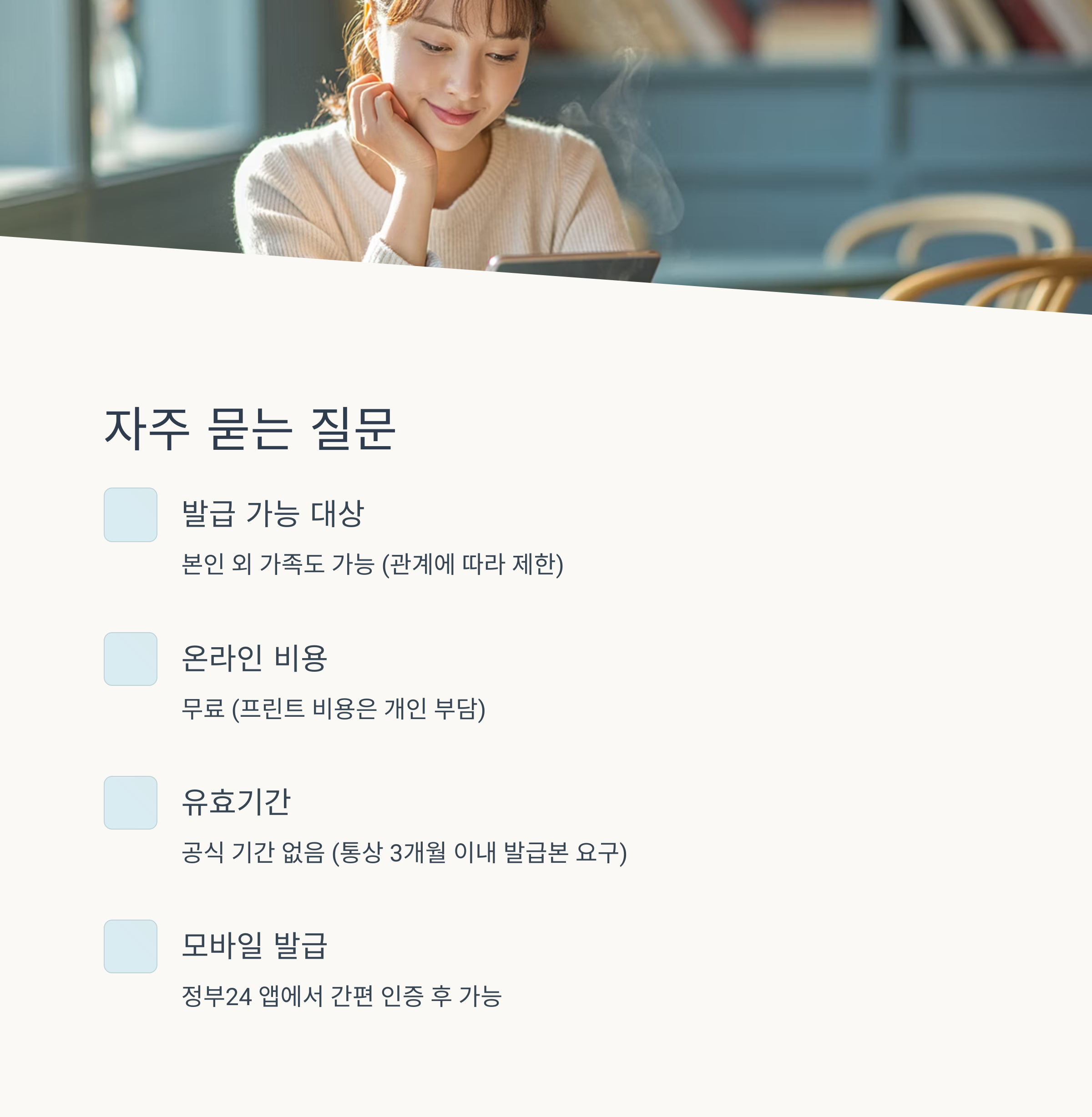 본인 외 가족도 발급 가능하지만, 관계 및 용도에 따라 제한이 있을 수 있습니다.