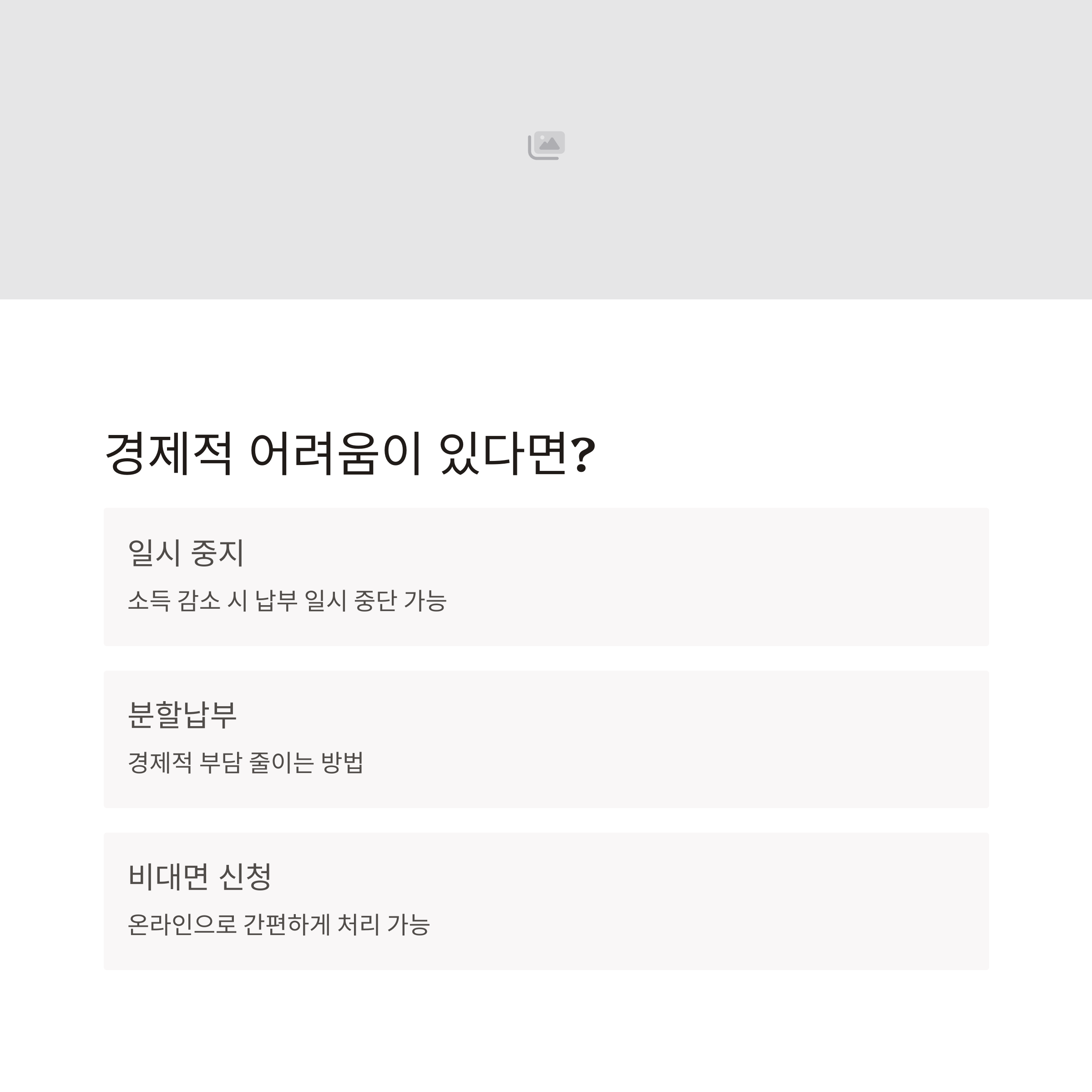 납부가 힘들다면 일시 중지 또는 분할납부 제도를 이용하세요. 저도 소득이 줄었던 시기에 6개월간 납부 중지 신청을 했고, 아주 간단하게 처리됐습니다. 비대면 신청도 가능하니 꼭 활용해보세요.