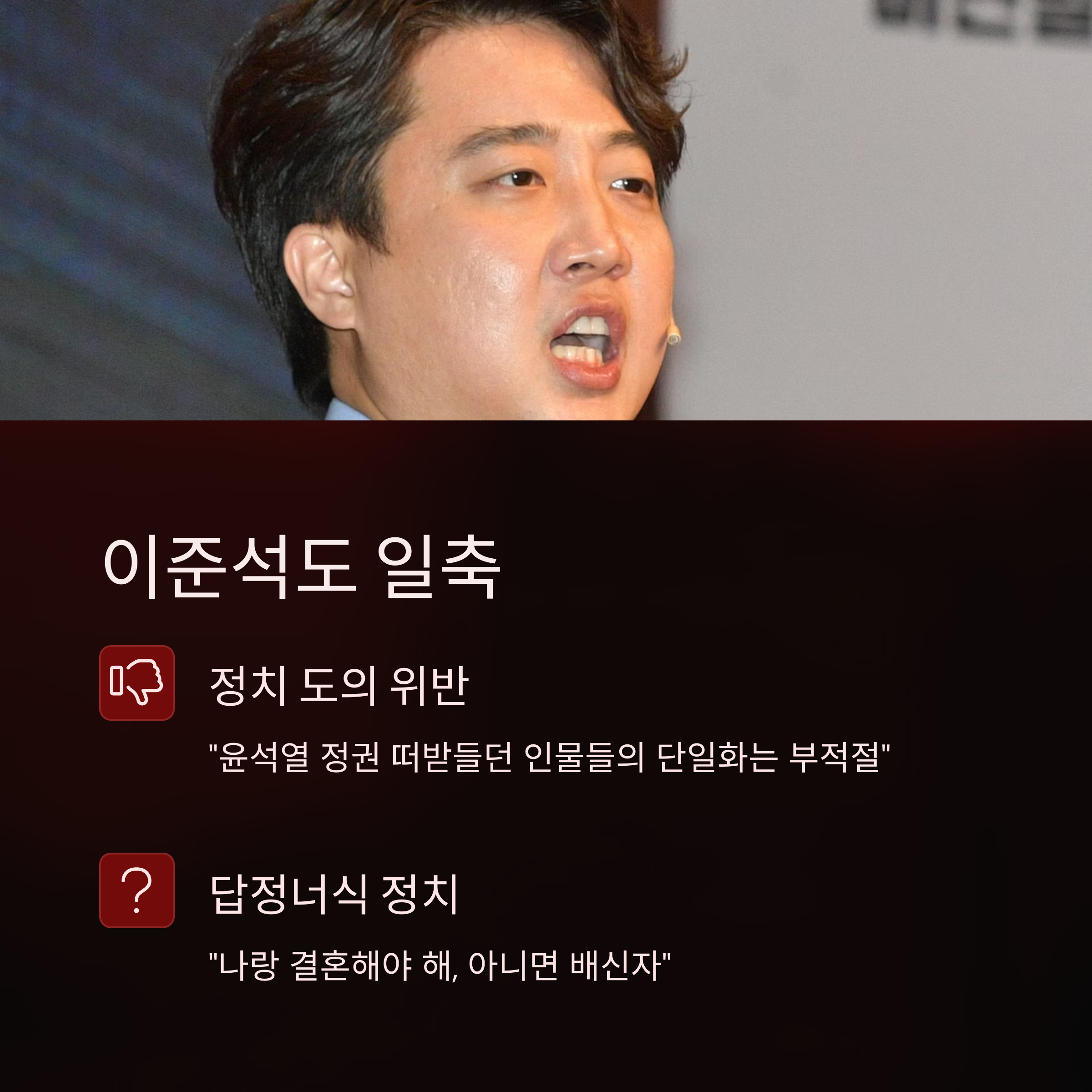 또한 “연애 아니면 결혼에 비유하면 거의 답정너”라며, “나랑 결혼해야 해, 아니면 배신자라는 식인데 누가 이런 단일화를 축하하겠는가”라고 비판했습니다.