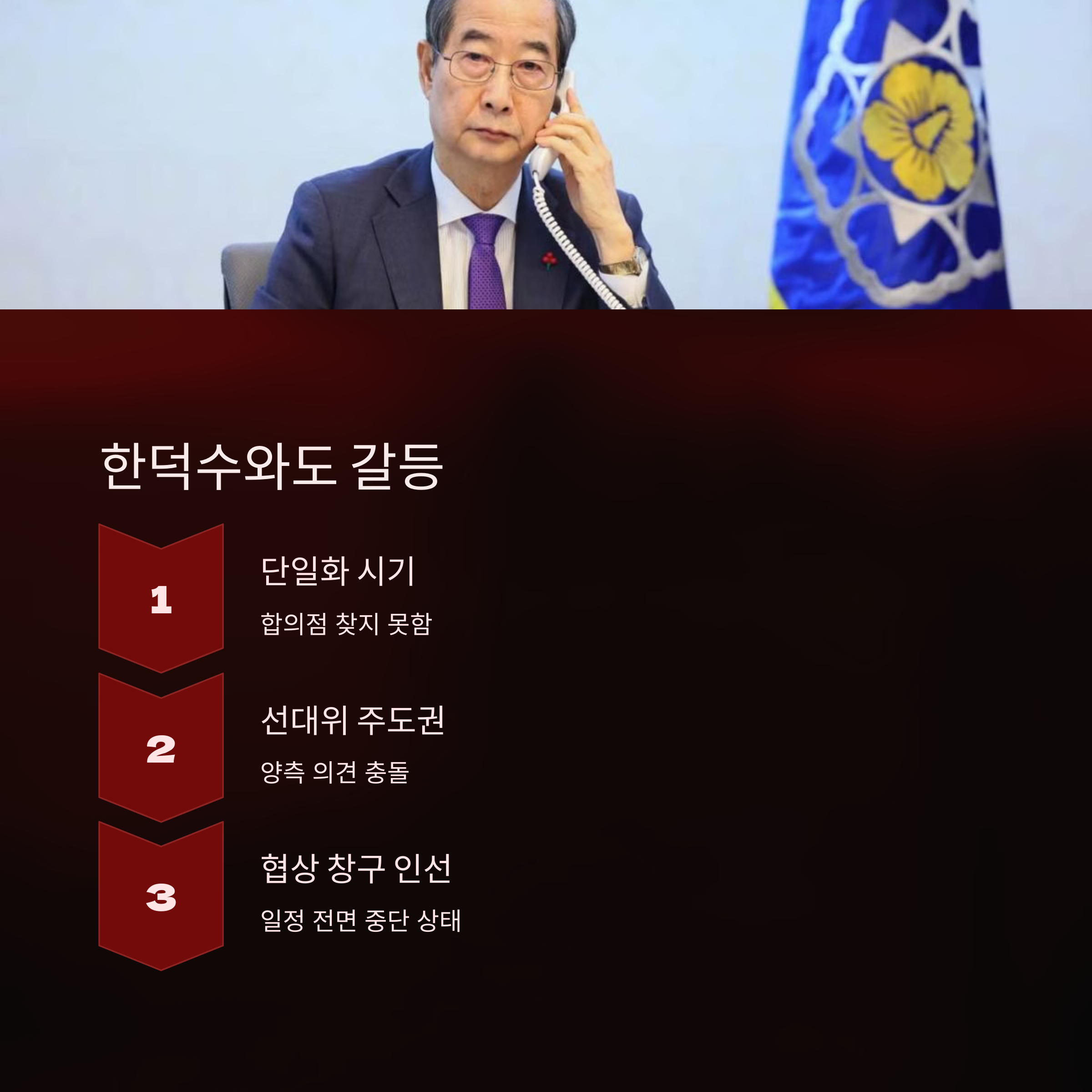 이로 인해 ‘한덕수-김문수 단일화’도 성사 여부가 불투명하며, 양자 단일화가 성사되지 않으면 이른바 ‘원샷 단일화’ 구상은 사실상 무산될 수밖에 없습니다.