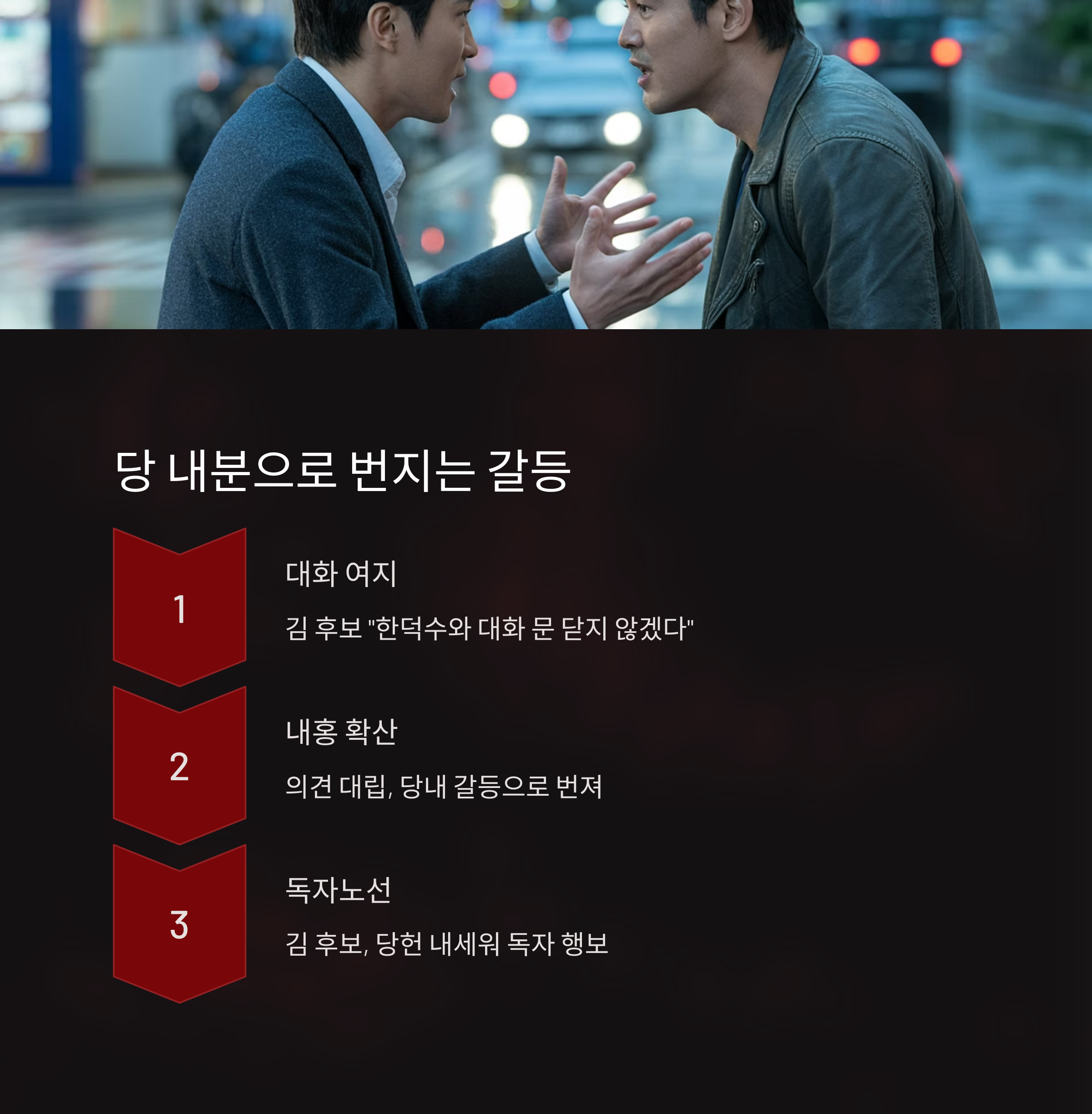 김 후보는 “한덕수 후보와는 대화의 문을 닫지 않겠다”고 말했지만, 당 지도부 및 캠프 간의 첨예한 의견 대립은 사실상 당내 내홍으로까지 확산되는 양상입니다.