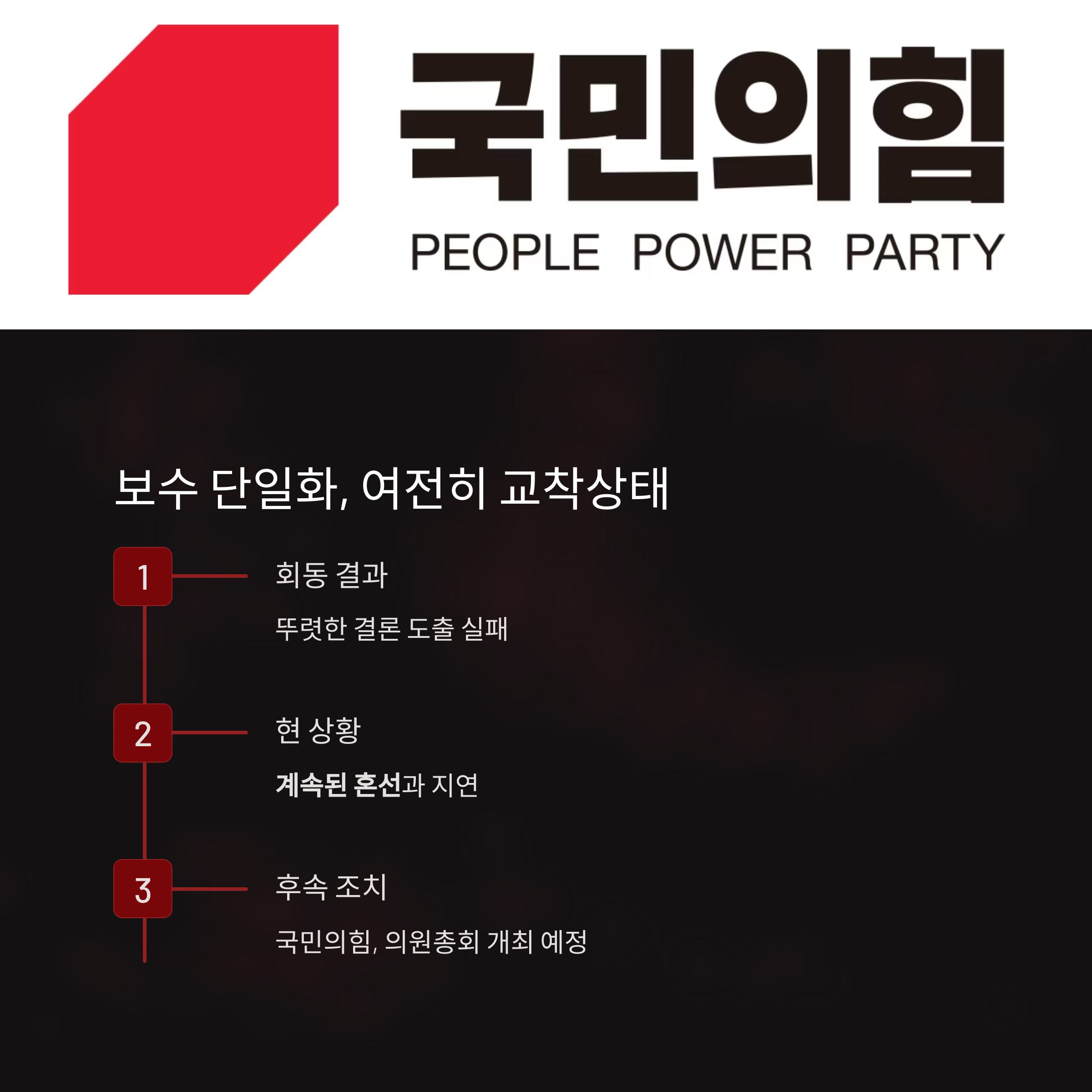 이번 회동에서 뚜렷한 결론이 나오지 않으면서, 보수 진영의 단일화 논의는 계속된 혼선과 지연에 빠져 있습니다. 국민의힘은 이날 밤 다시 의원총회를 열고 단일화 대응 전략을 논의하기로 했습니다.