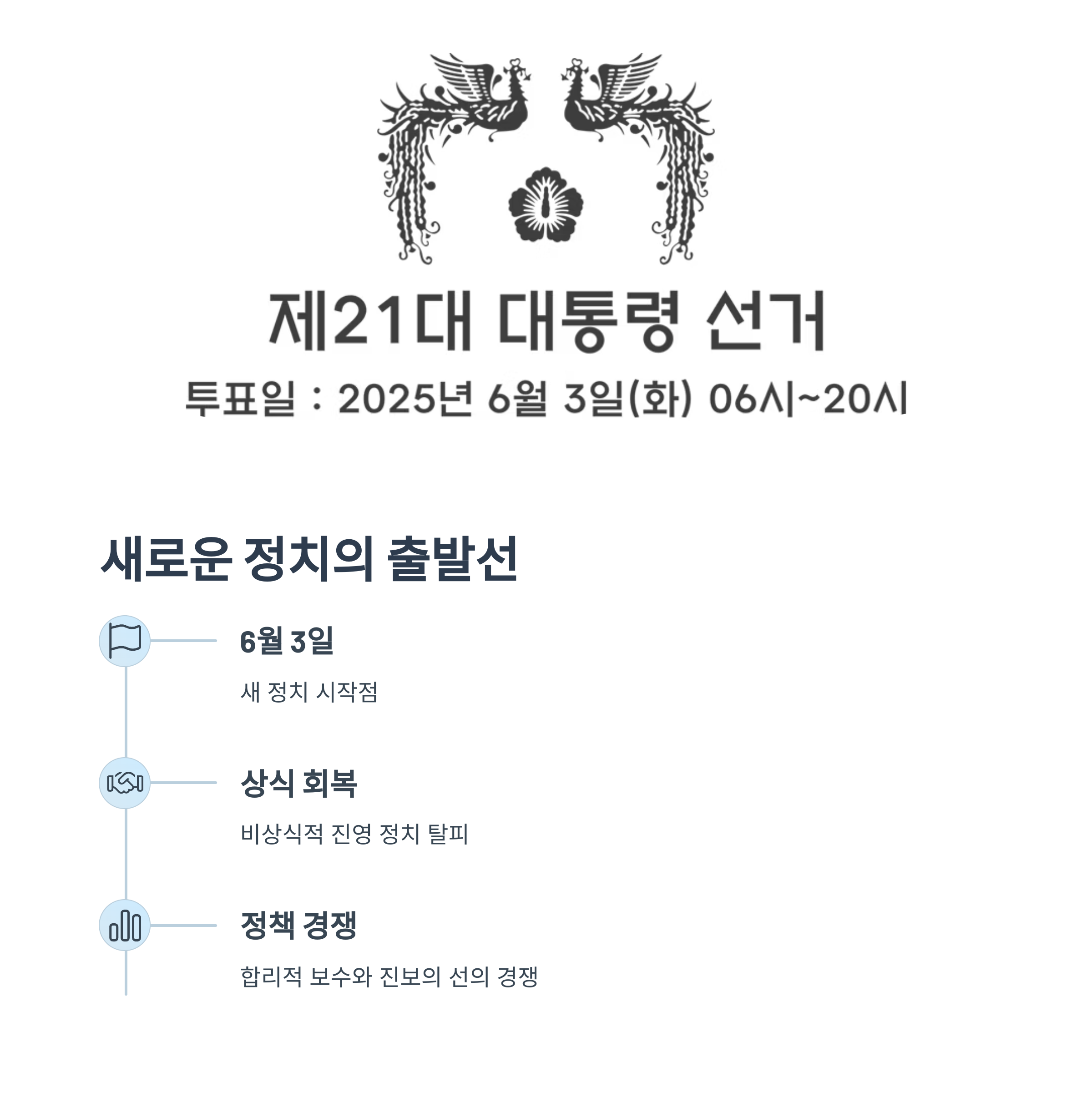 김상욱 의원은 6월 3일을 새로운 정치의 출발선으로 제시했습니다. 비상식적인 진영 정치에서 벗어나, 상식적인 정치가 자리 잡는 사회. 합리적 보수와 진보가 서로 경쟁하며 더 나은 정책을 제시하는 정치판. 이것이 우리가 바라는 정치 아닐까요?