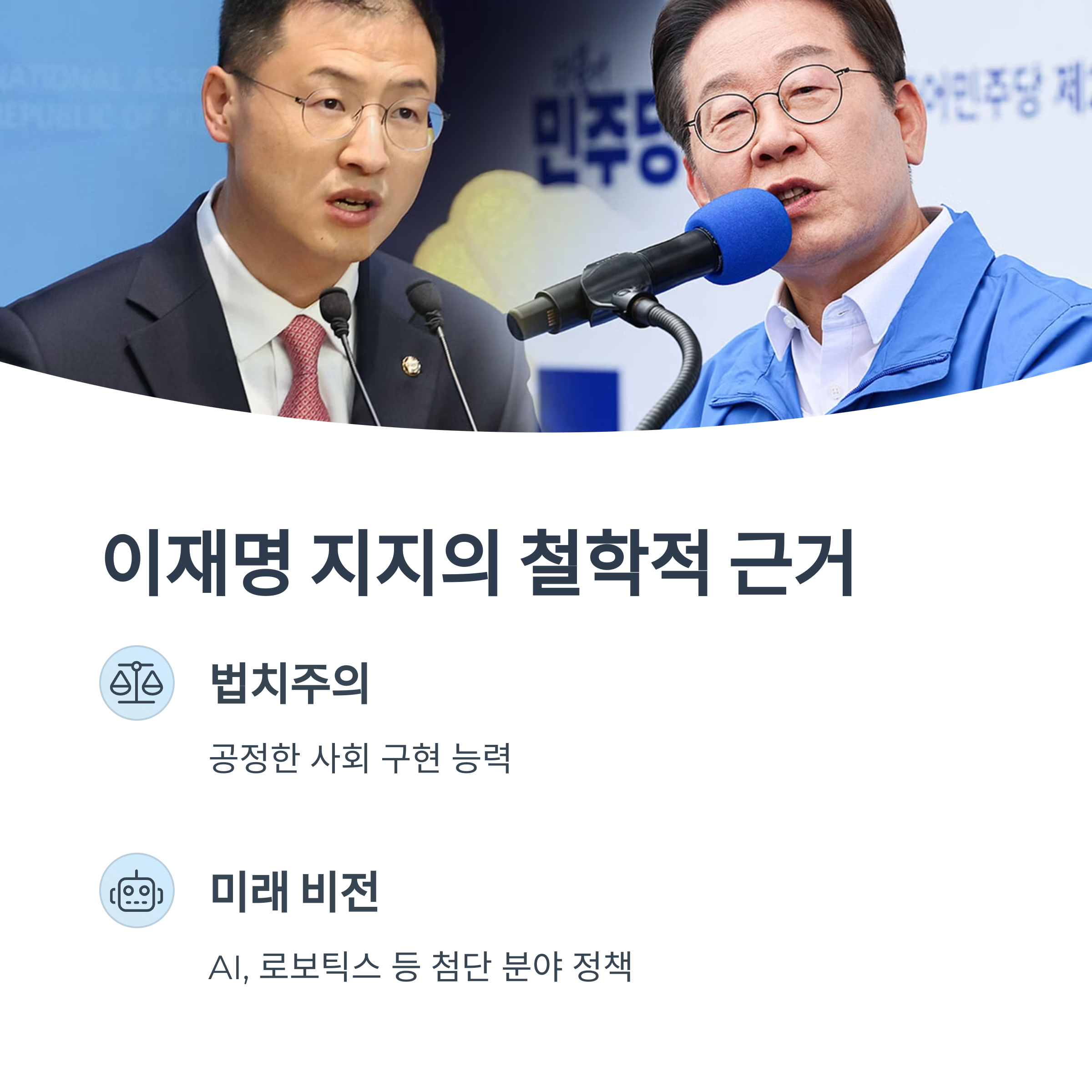 이재명 후보를 보수의 기능으로도, 진보의 기능으로도 뛰어난 정치인이라 평가한 김상욱 의원. 이 발언은 단순한 지지 선언을 넘어선 철학적 지지로 보였습니다. 그는 “이재명 후보야말로 법치주의, 민주주의, 공정한 사회를 만들기에 가장 앞장서고 있는 분”이라고 강조했어요. AI, 로보틱스 같은 첨단 분야까지 정책적으로 고민하고 있는 모습을 보며, 시대를 선도할 자질을 느꼈다고 합니다.