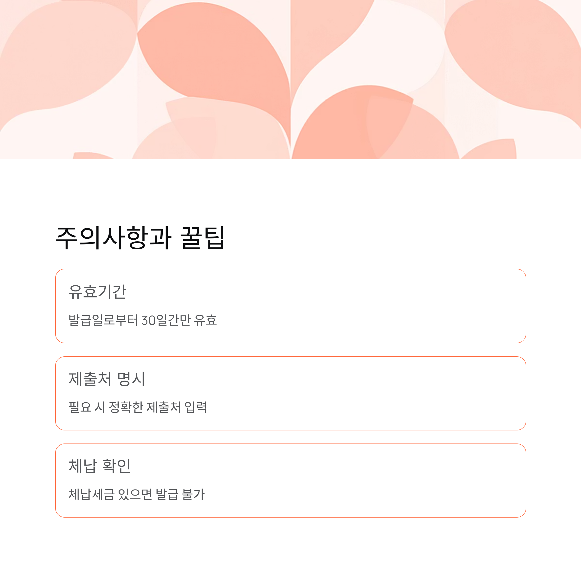 주의: 납세증명서는 기본적으로 ‘체납 없음’을 기준으로 발급되며, 체납 시에는 발급이 제한될 수 있습니다.