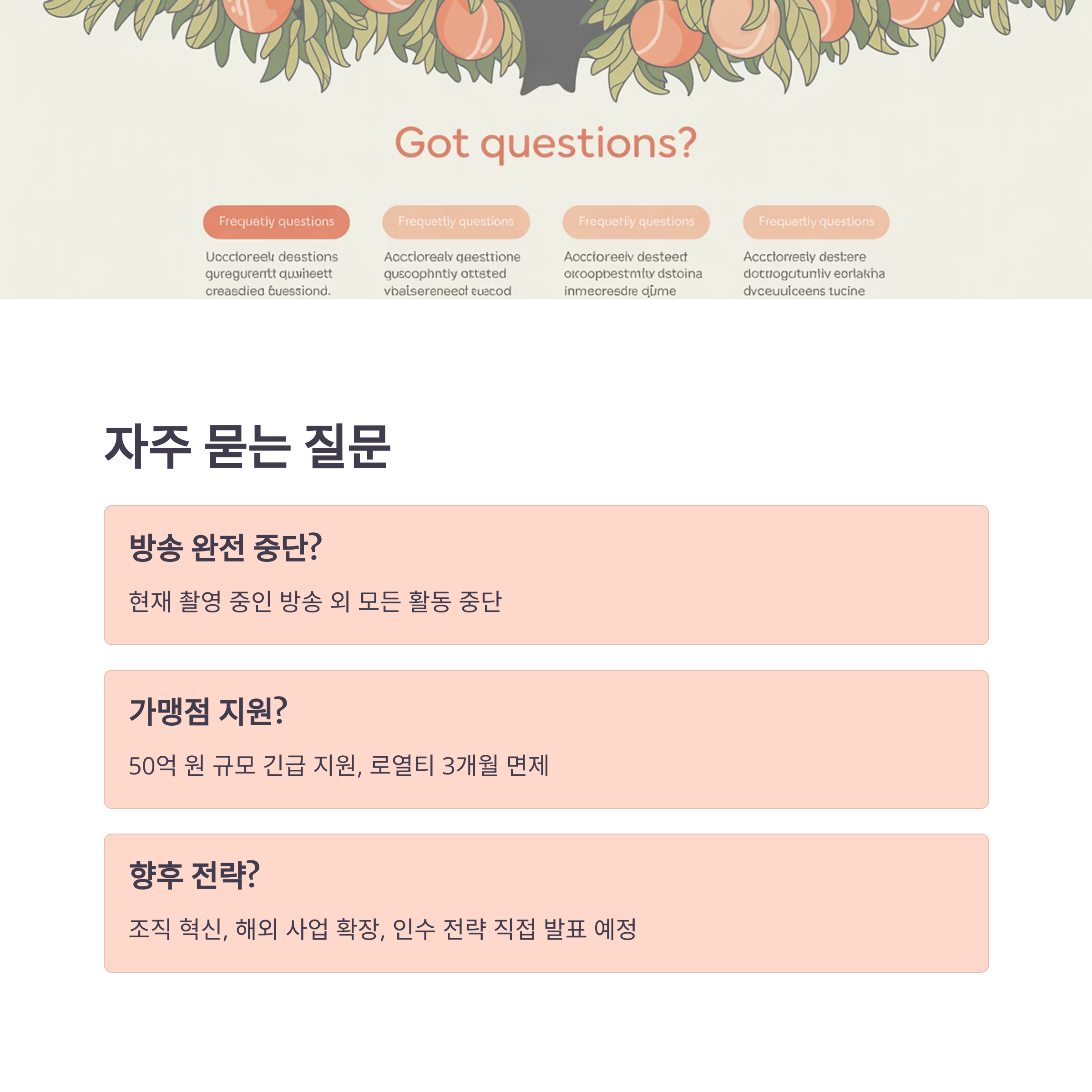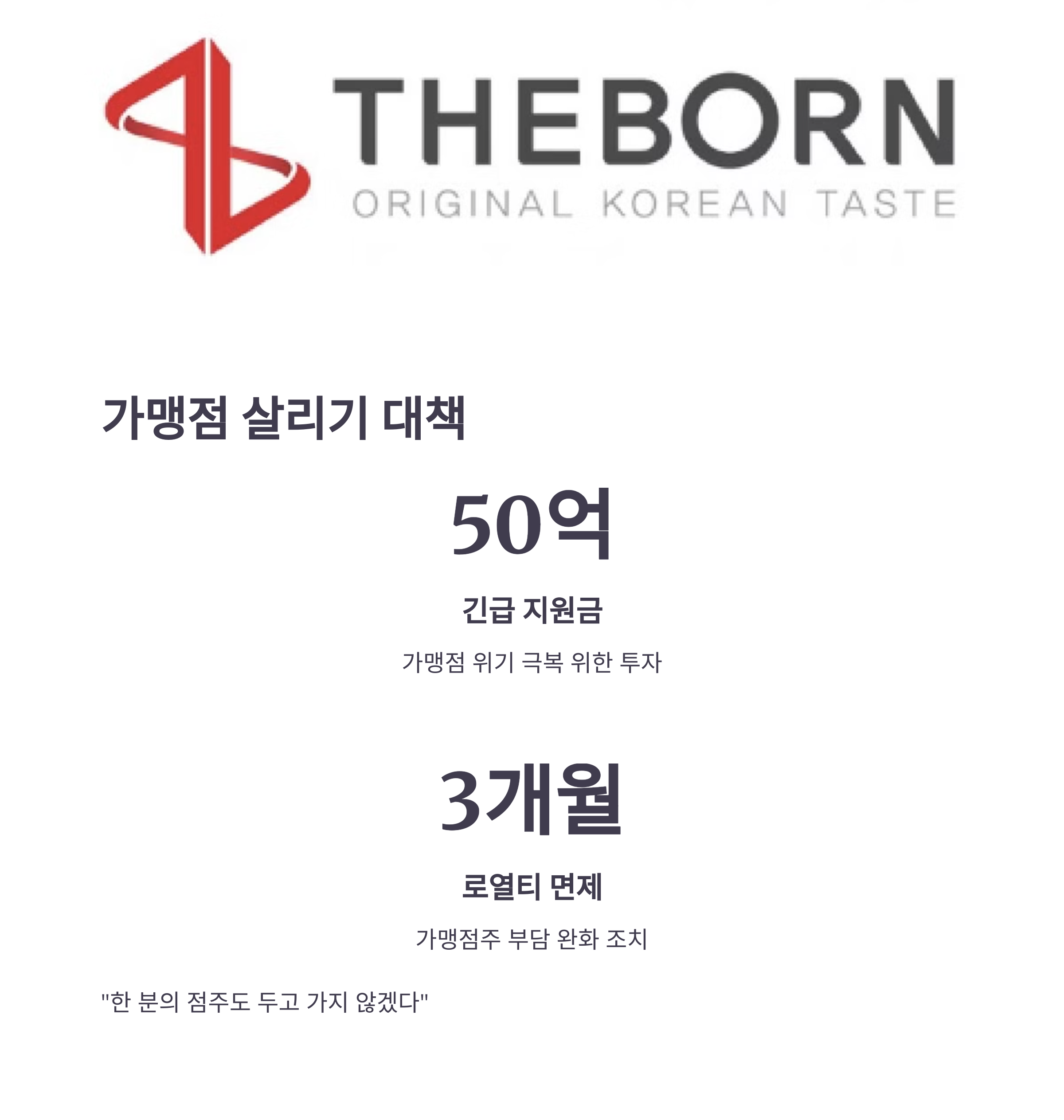 그는 “한 분의 점주도 두고 가지 않겠다”며 전폭적인 지원 방침을 전했습니다. 50억 원 규모의 긴급 플랜 외에도 브랜드별 맞춤형 대책을 예고하며, 가맹점과의 상생을 경영 핵심 가치로 내세웠습니다.