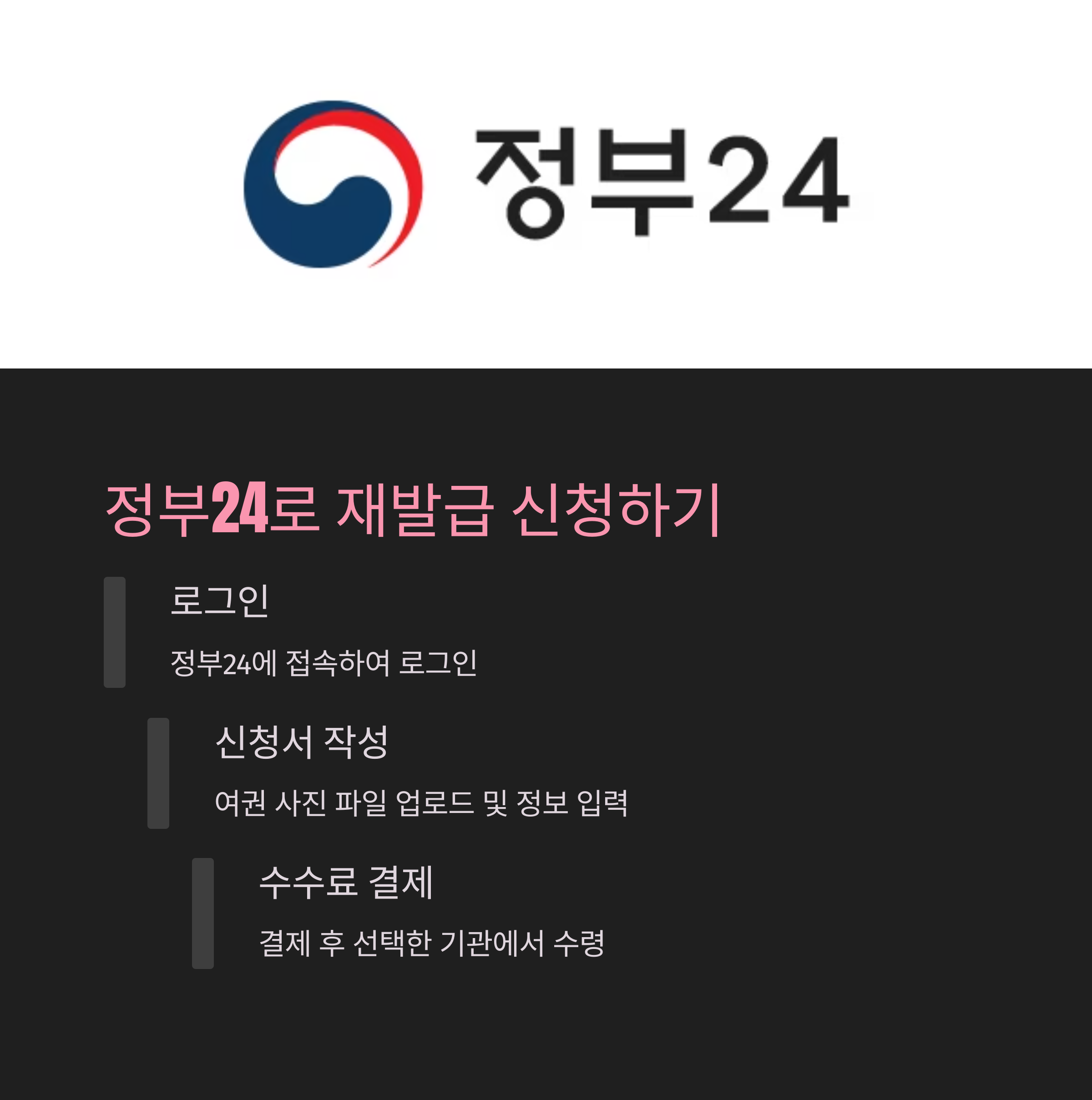 정부24 웹사이트를 통해 여권 재발급을 신청할 수 있습니다: