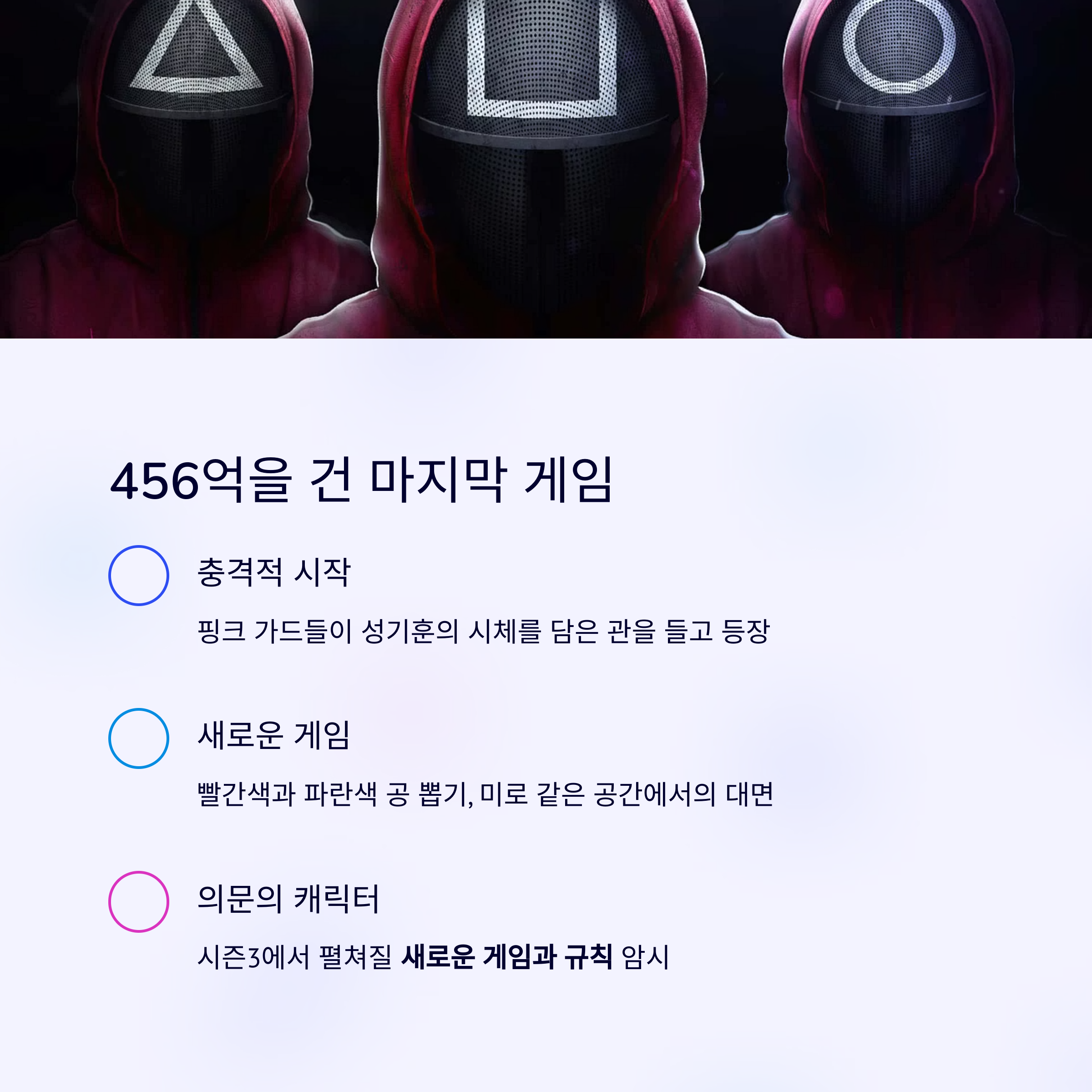 이번 시즌3는 “456억을 건 최종 라운드”라는 설정으로, 한층 더 잔혹하고 전략적인 전개가 예상됩니다. 그만큼 시청자들의 기대감도 극에 달하고 있습니다.
