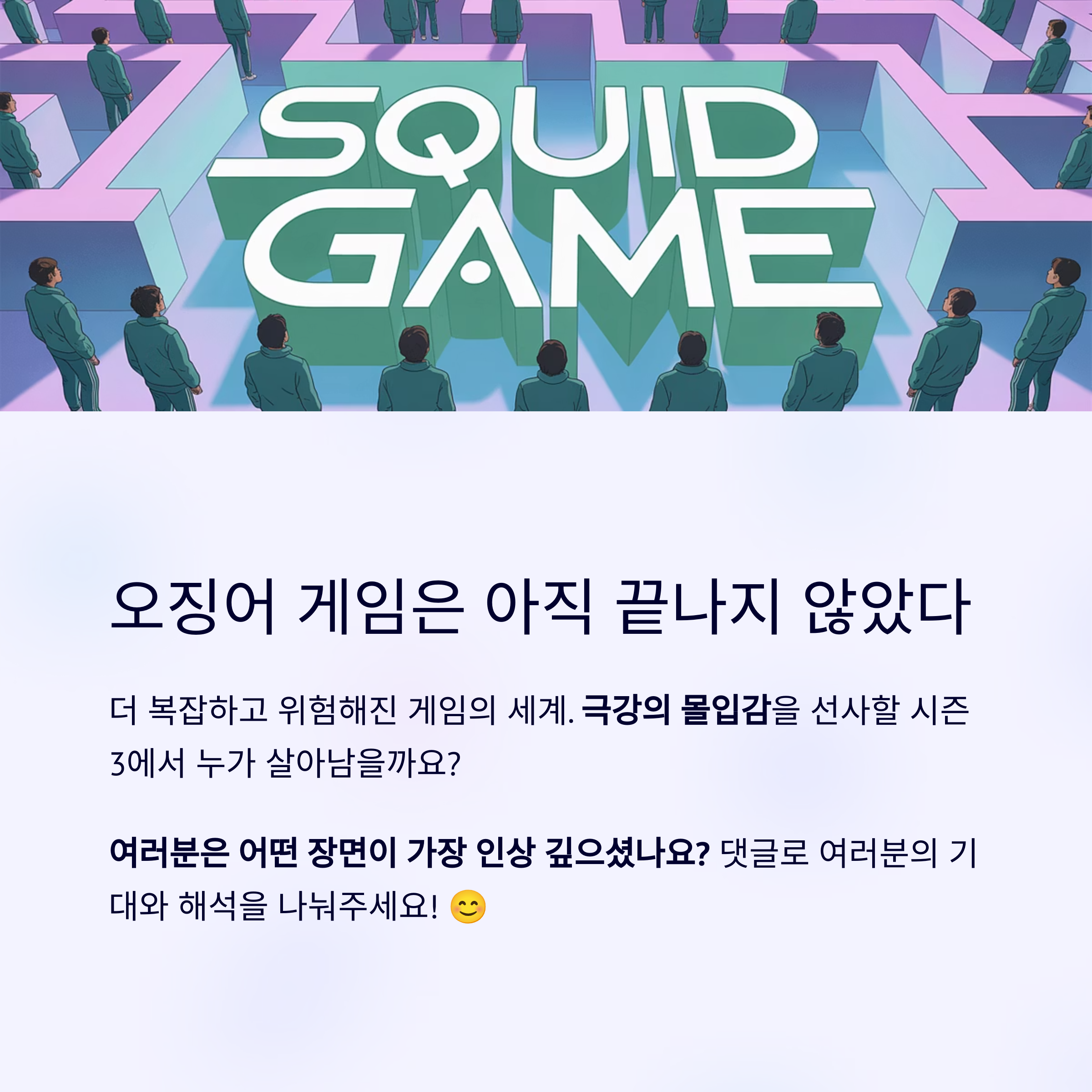 한동안 잊고 있던 ‘오징어 게임’의 열기가 다시 느껴졌습니다. 시즌3가 보여줄 감정의 소용돌이와 사회적 메시지, 벌써부터 기대되지 않나요?