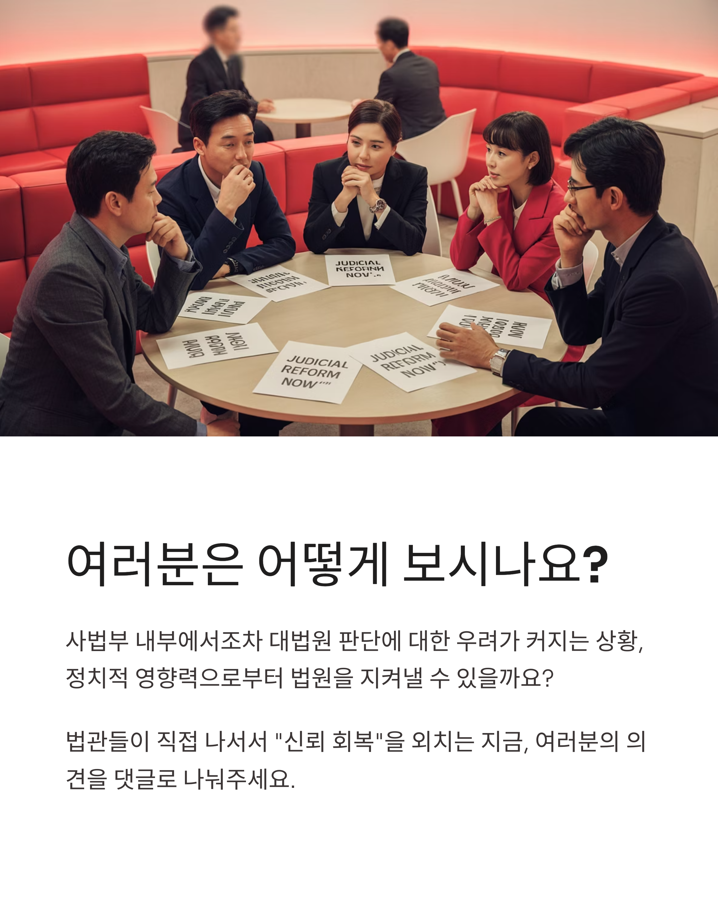 법관들이 직접 나서서 “신뢰 회복”을 외치는 지금, 여러분은 사법부를 어떻게 평가하고 계신가요? 댓글로 의견을 나눠주세요.