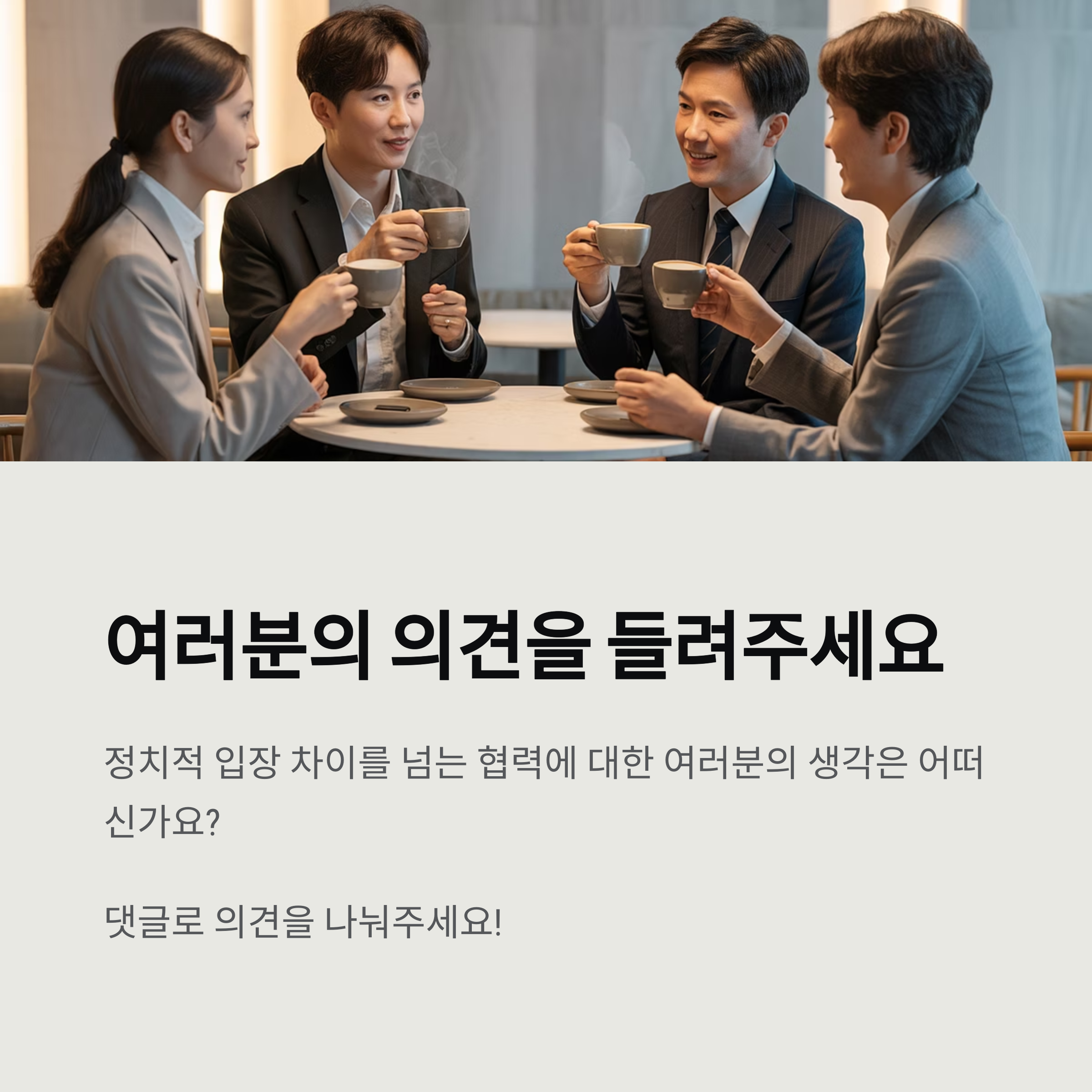 여러분은 정치적 입장 차이를 넘는 협력에 대해 어떻게 생각하시나요? 댓글로 의견을 공유해 주세요!