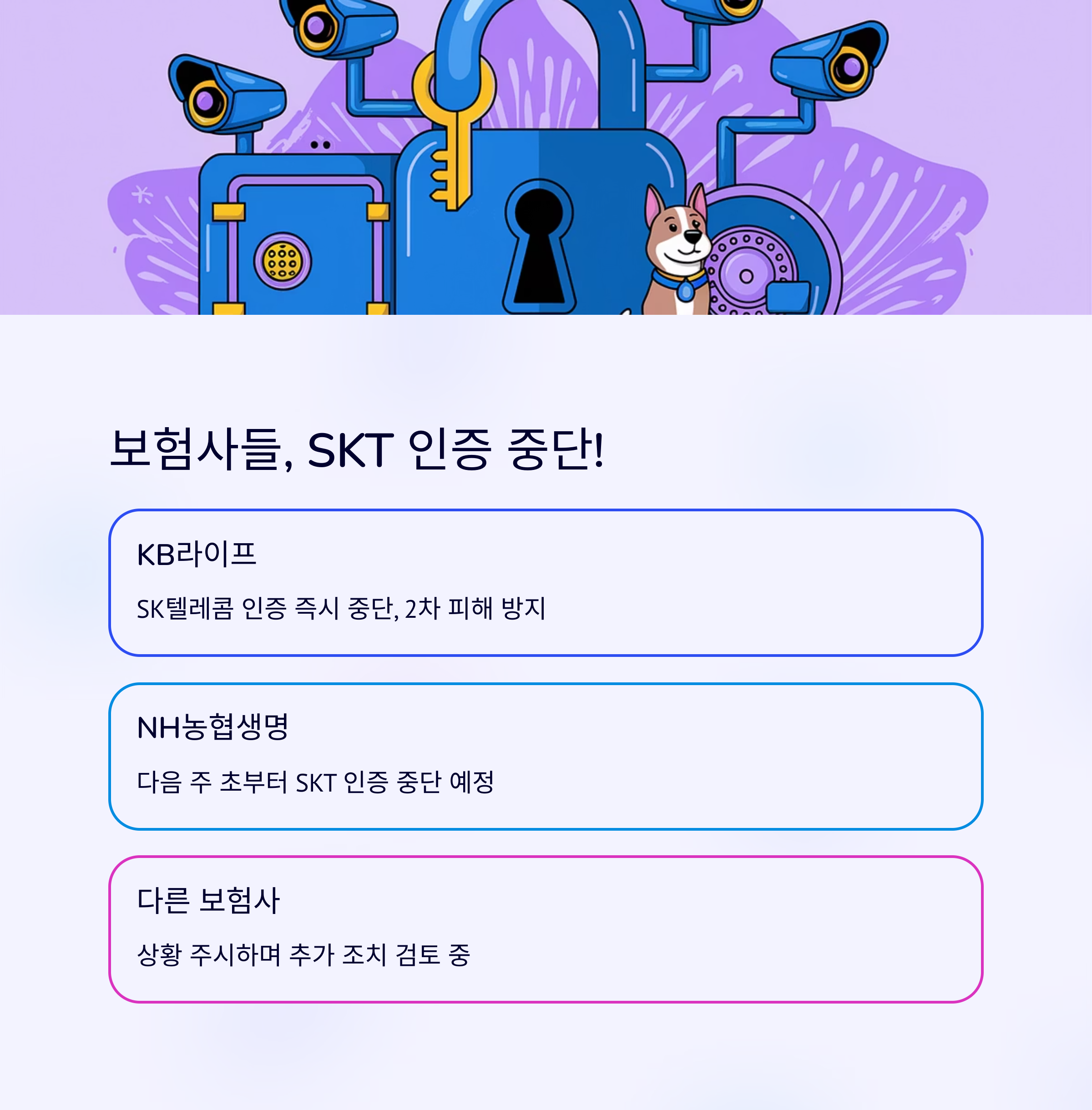 - NH농협생명: 다음 주 초부터 SKT 인증 중단 예정. 고객 정보 보호 차원에서 선제적 대응.