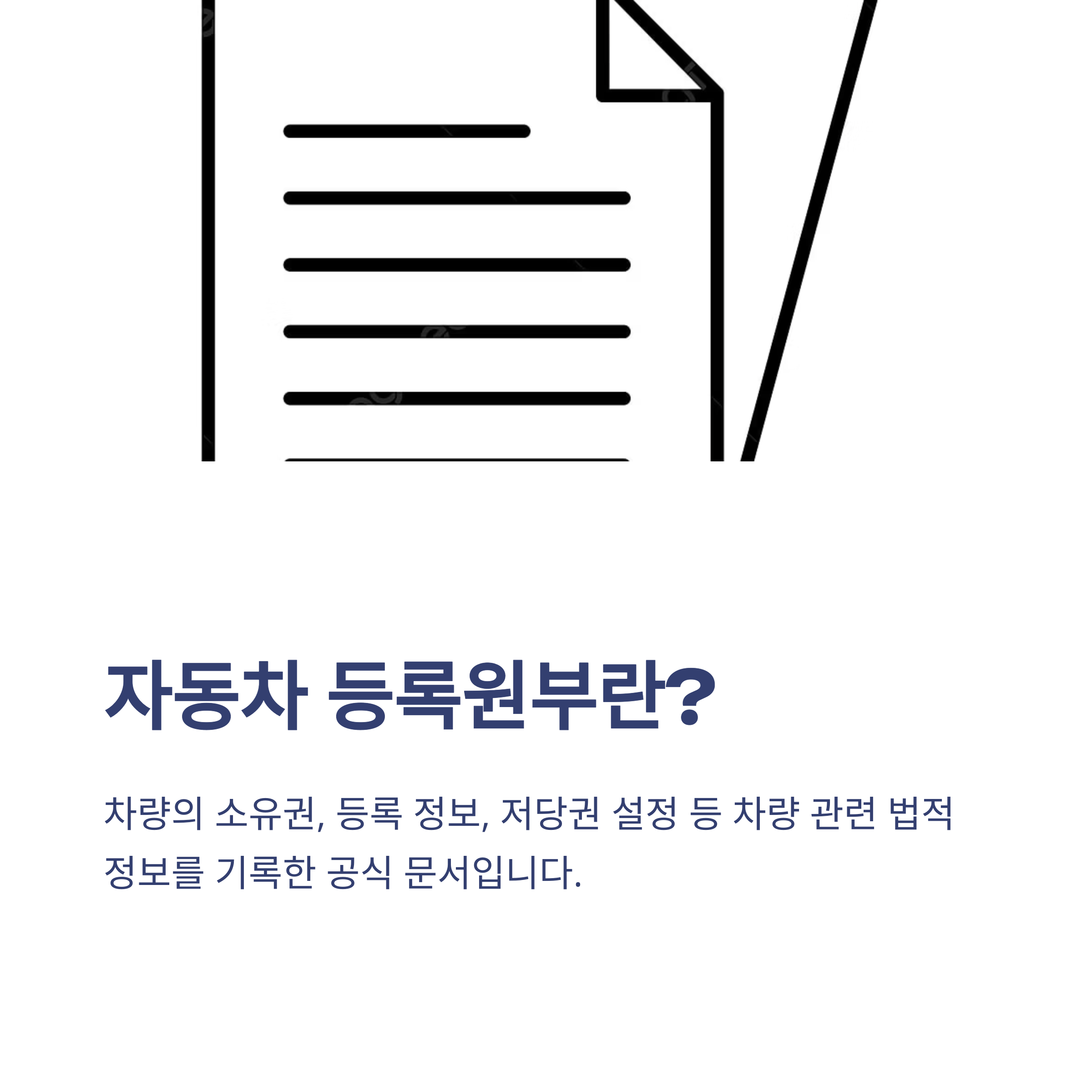 자동차 등록원부는 차량의 소유권, 등록 정보, 저당권 설정 등 차량과 관련된 법적 정보를 기록한 공식 문서입니다. 중고차 거래, 차량 담보 설정, 소유권 이전 등 다양한 상황에서 필수적으로 요구됩니다.