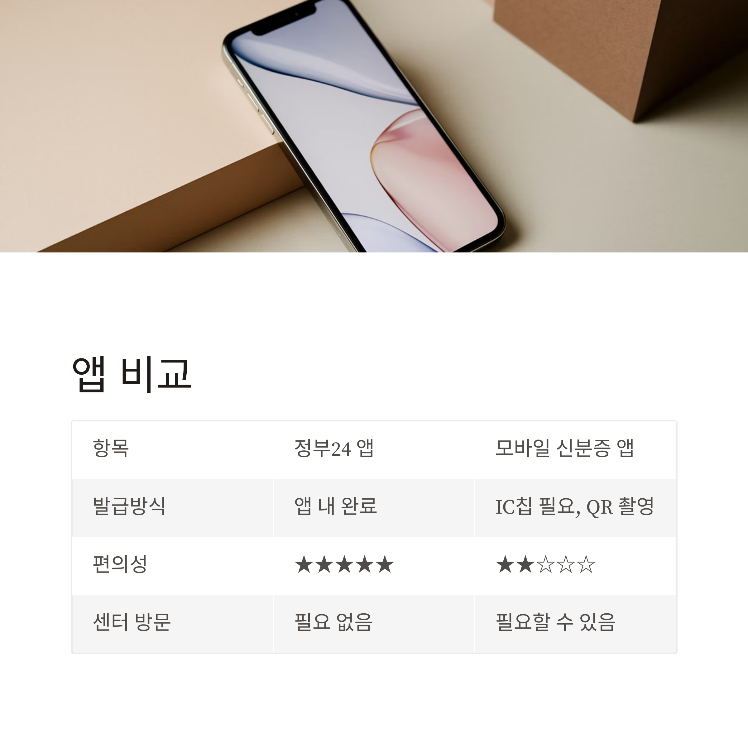 | 항목 | 정부24 앱 | 모바일 신분증 앱 |