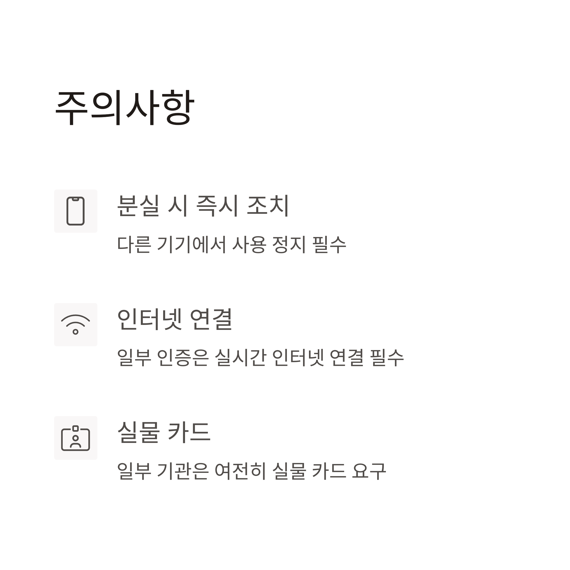 A. 일부 기관은 실물 카드만 인식하기 때문에, 꼭 잘 보관해두세요.
