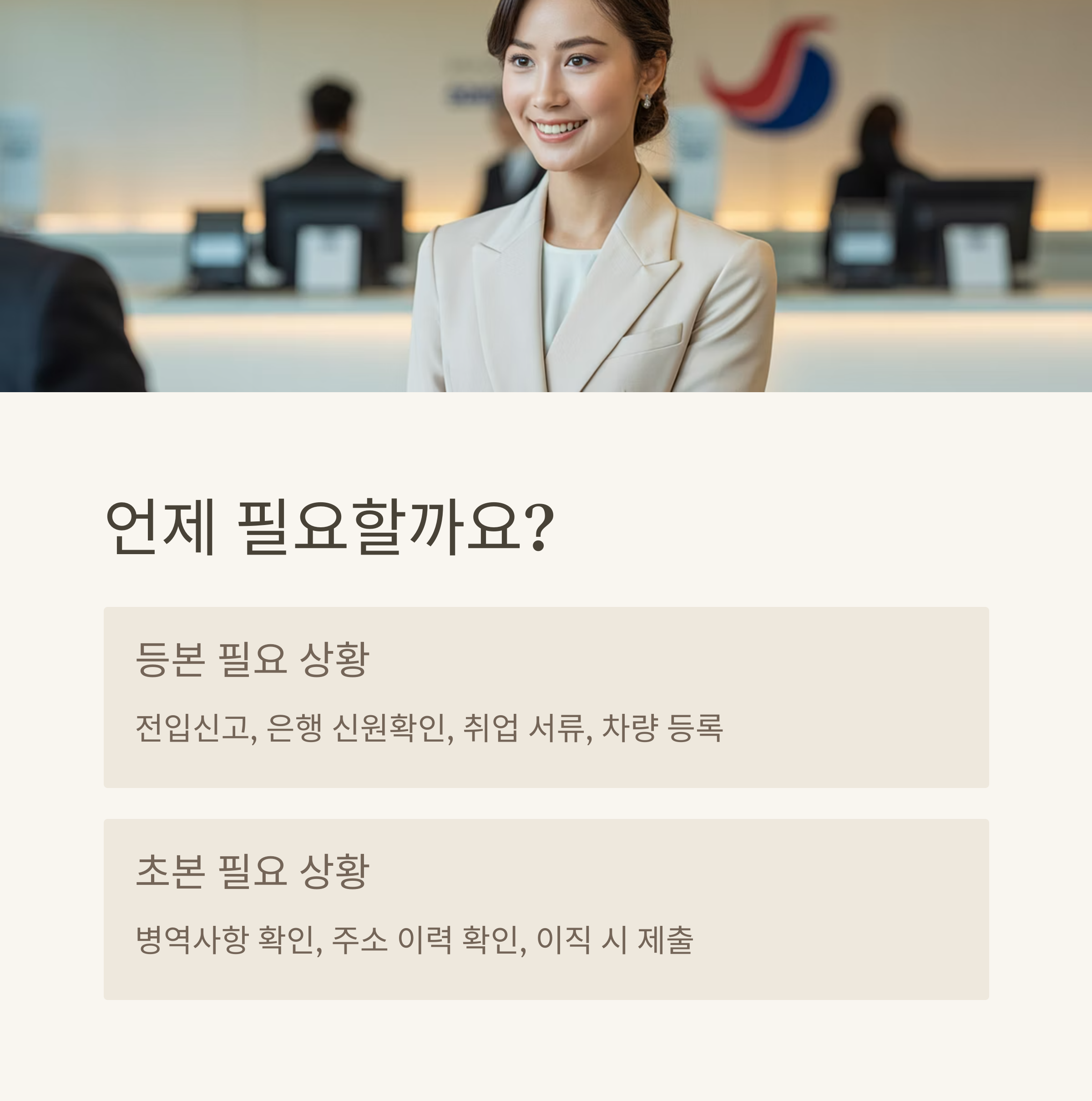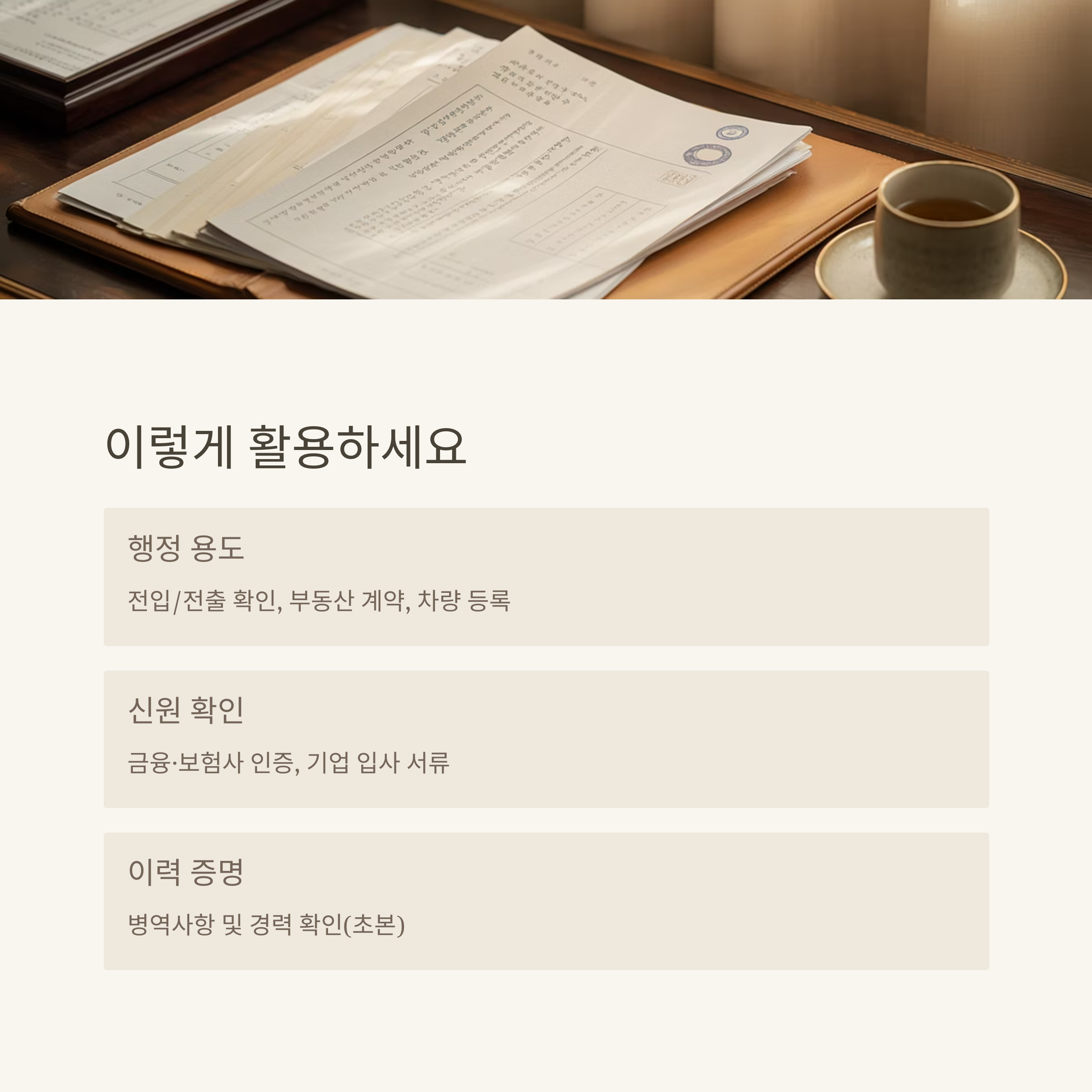 - ✅ 초본은 병역사항 확인, 이력 확인 시 사용