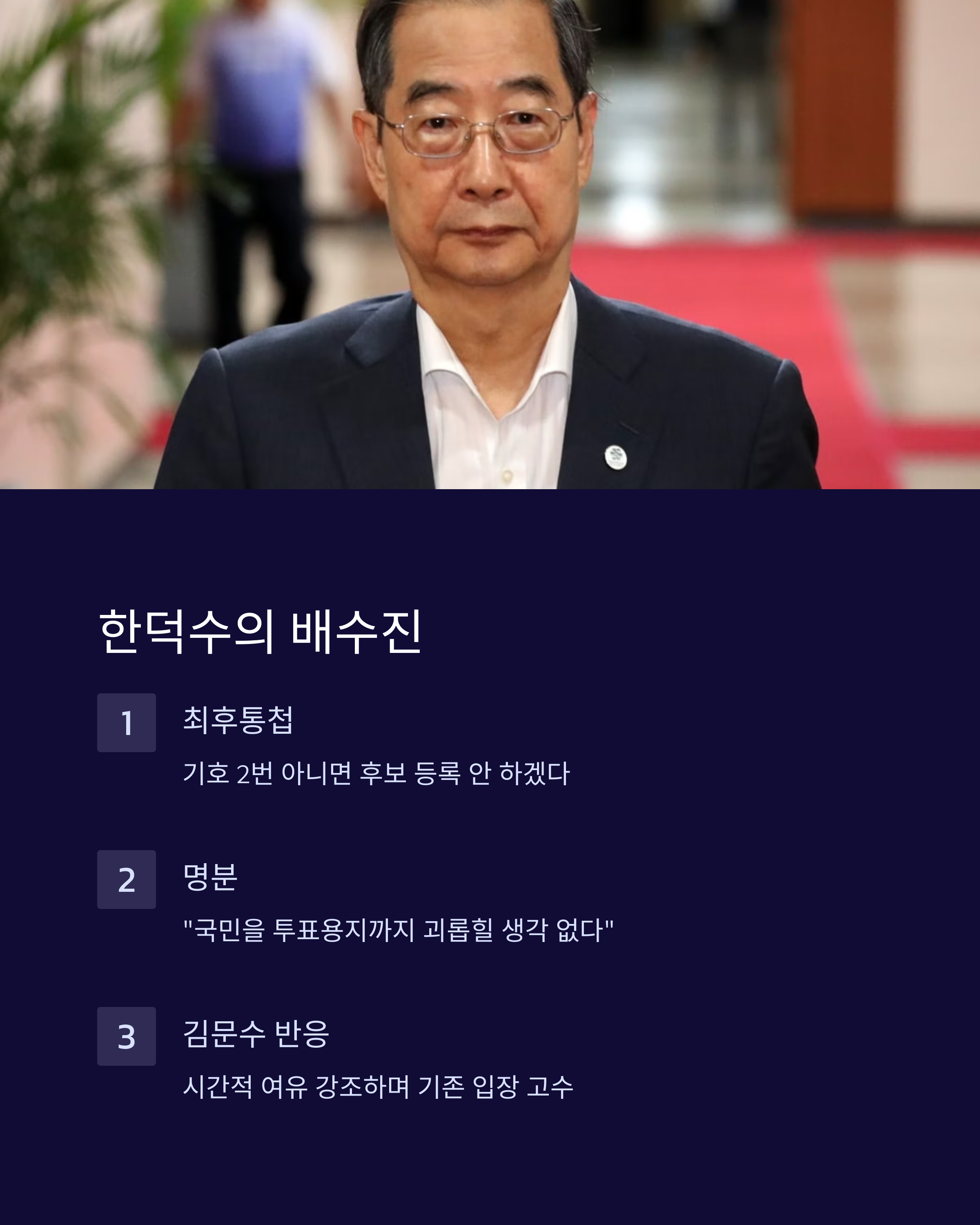 5. 한덕수 “기호 2번 아니면 안 나가겠다”