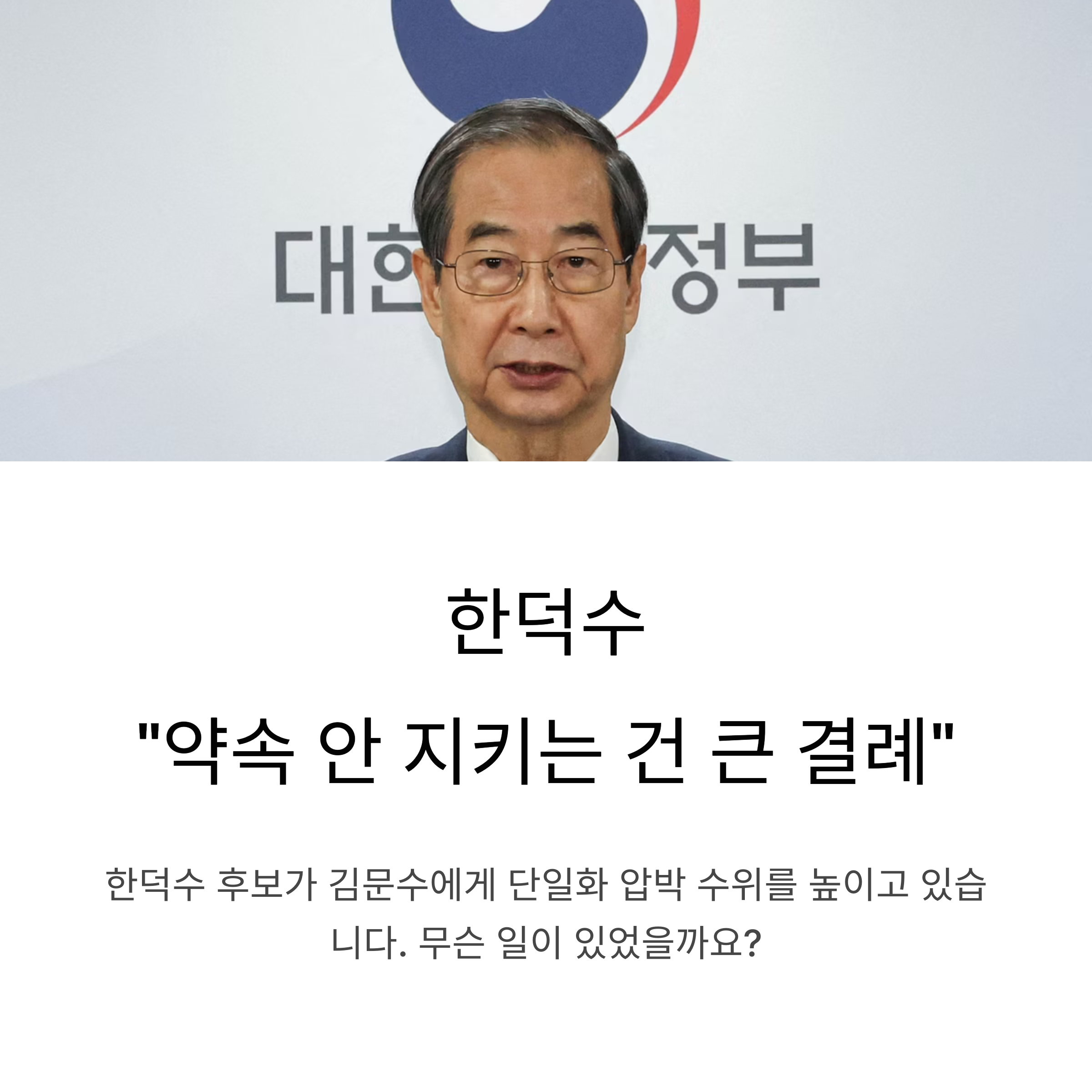 🗳️ 한덕수 “약속 안 지키는 건 큰 결례” 단일화 압박 수위↑