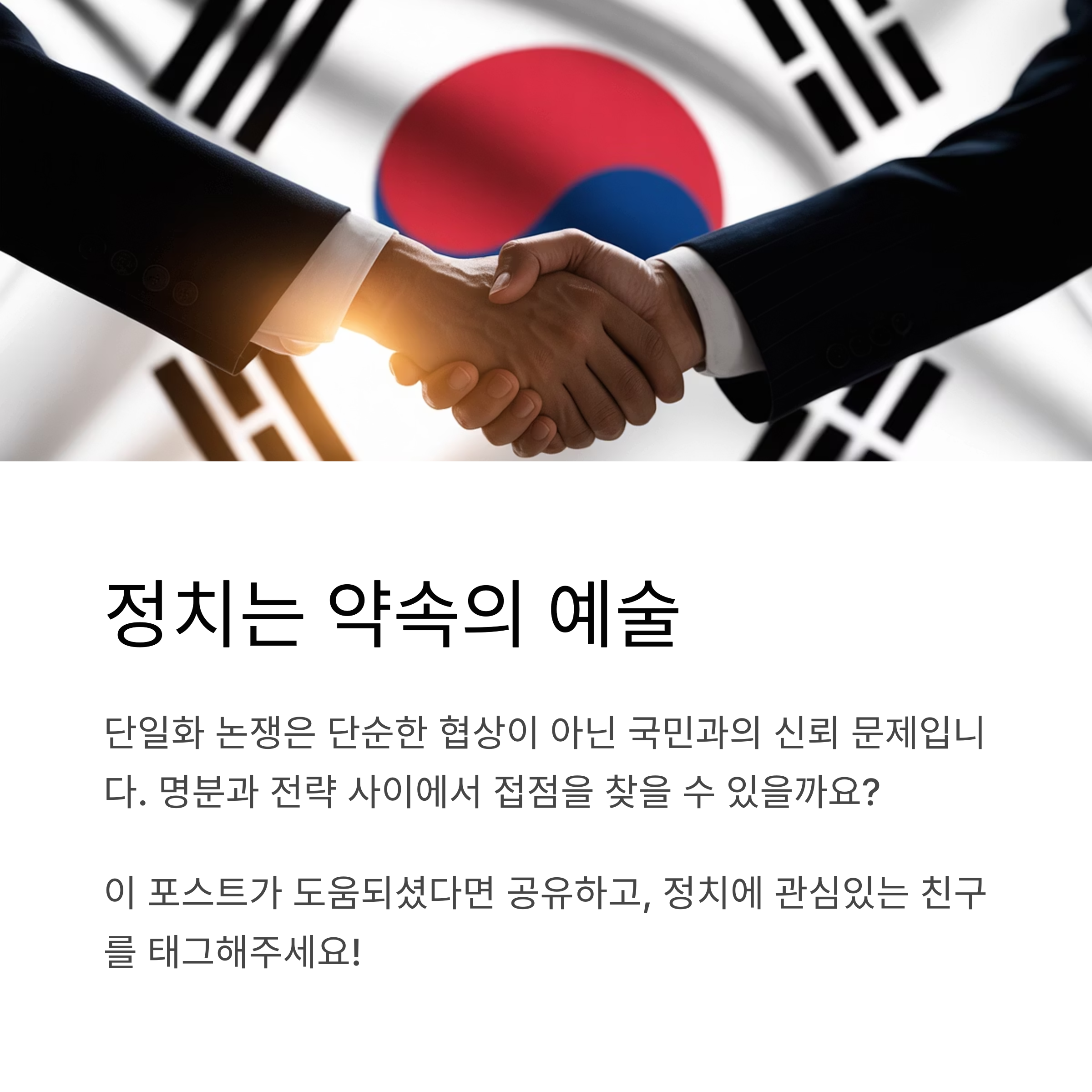 정치는 약속의 예술입니다. 지금의 단일화 논쟁은 단순한 협상이 아니라, 국민과의 신뢰 문제로 이어지고 있습니다. 단일화는 명분과 전략 사이에서 갈림길에 서 있습니다. 과연 남은 시간 안에 접점을 찾을 수 있을까요?