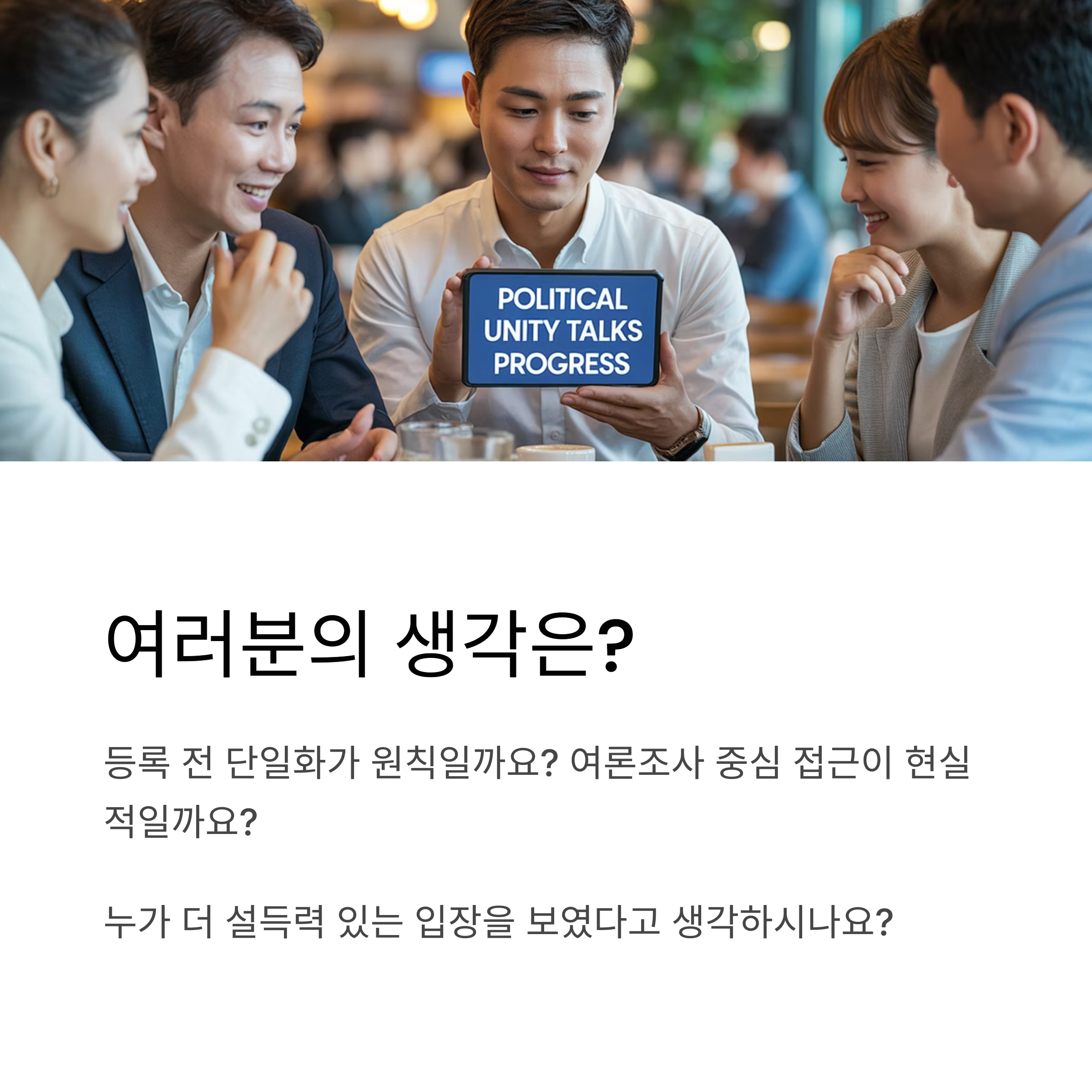 여러분은 이번 단일화 국면에서 누가 더 설득력 있는 입장을 보였다고 생각하시나요? 댓글로 의견을 나눠주세요.
