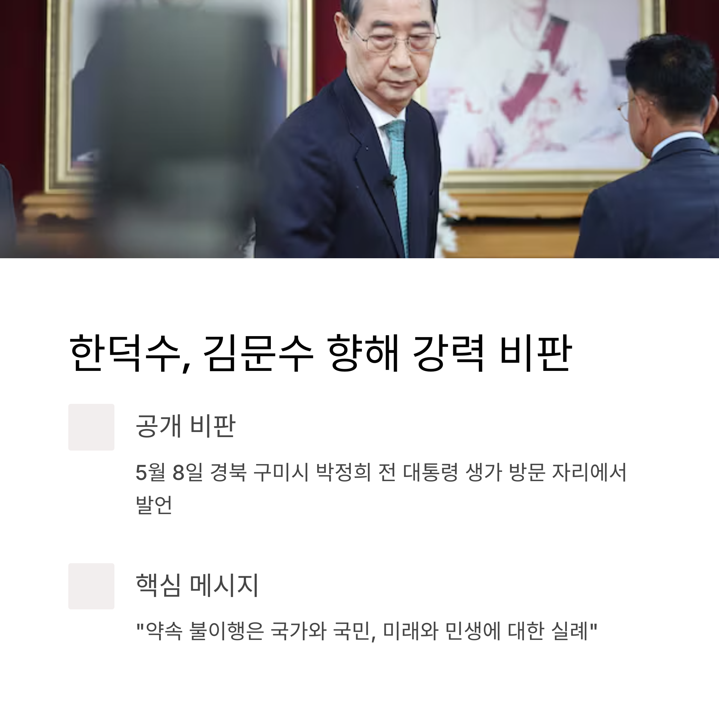 1. 한덕수, 김문수 향해 강력한 공개 비판