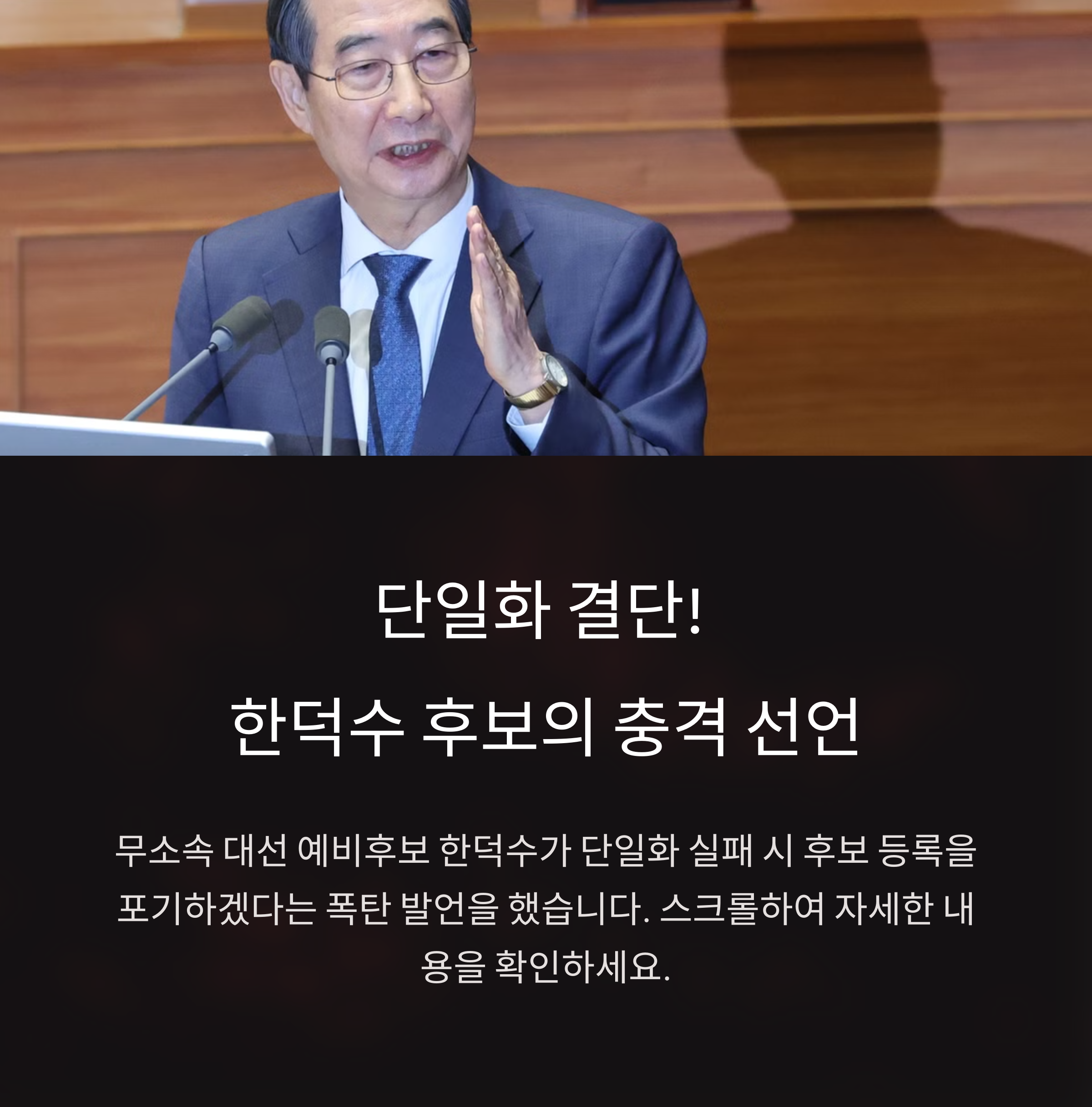 1. 한덕수, 단일화 실패 시 “본선 등록 않겠다”