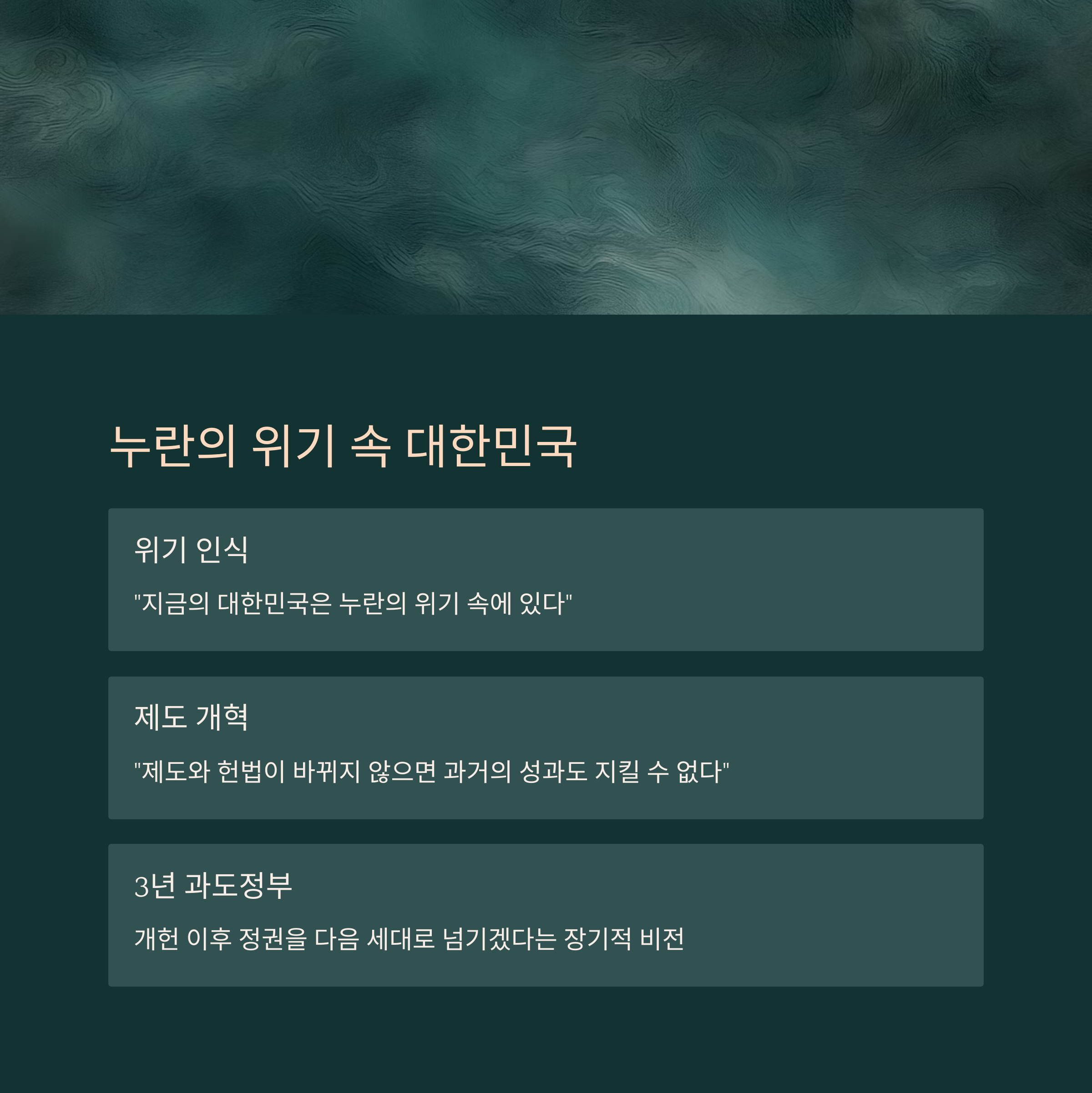 이 같은 발언은 단기 집권을 목표로 한 정치가 아닌, 구조적 개혁을 추구하는 장기적 비전을 내포하고 있어 국민적 관심이 높아지고 있습니다.