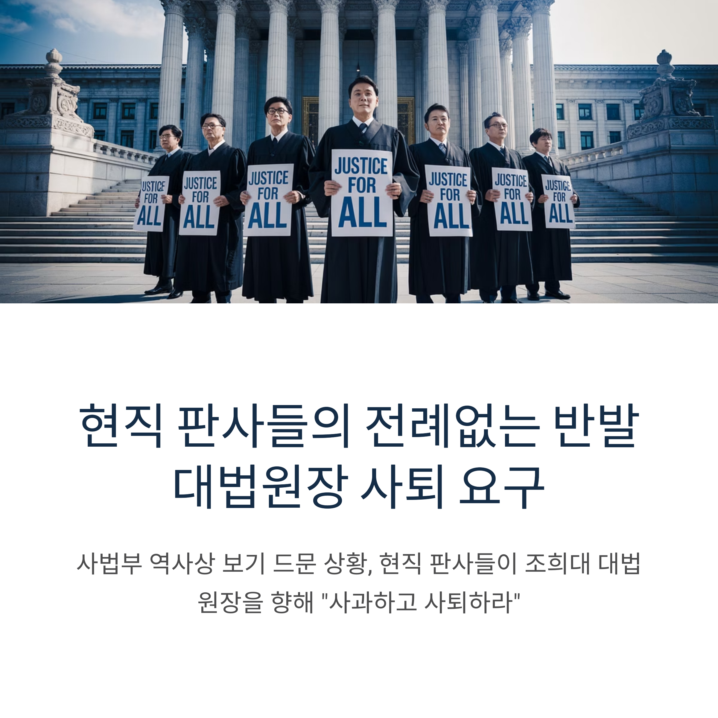 김 부장판사는 법관들이 조 대법원장에 대한 사퇴 권고 결의를 검토해야 한다며, 전국 법관대표회의 소집을 촉구했습니다. 그는 “사법부 전체가 대법원장의 정치적 신념에 볼모로 동원돼선 안 된다”는 경고도 덧붙였어요.