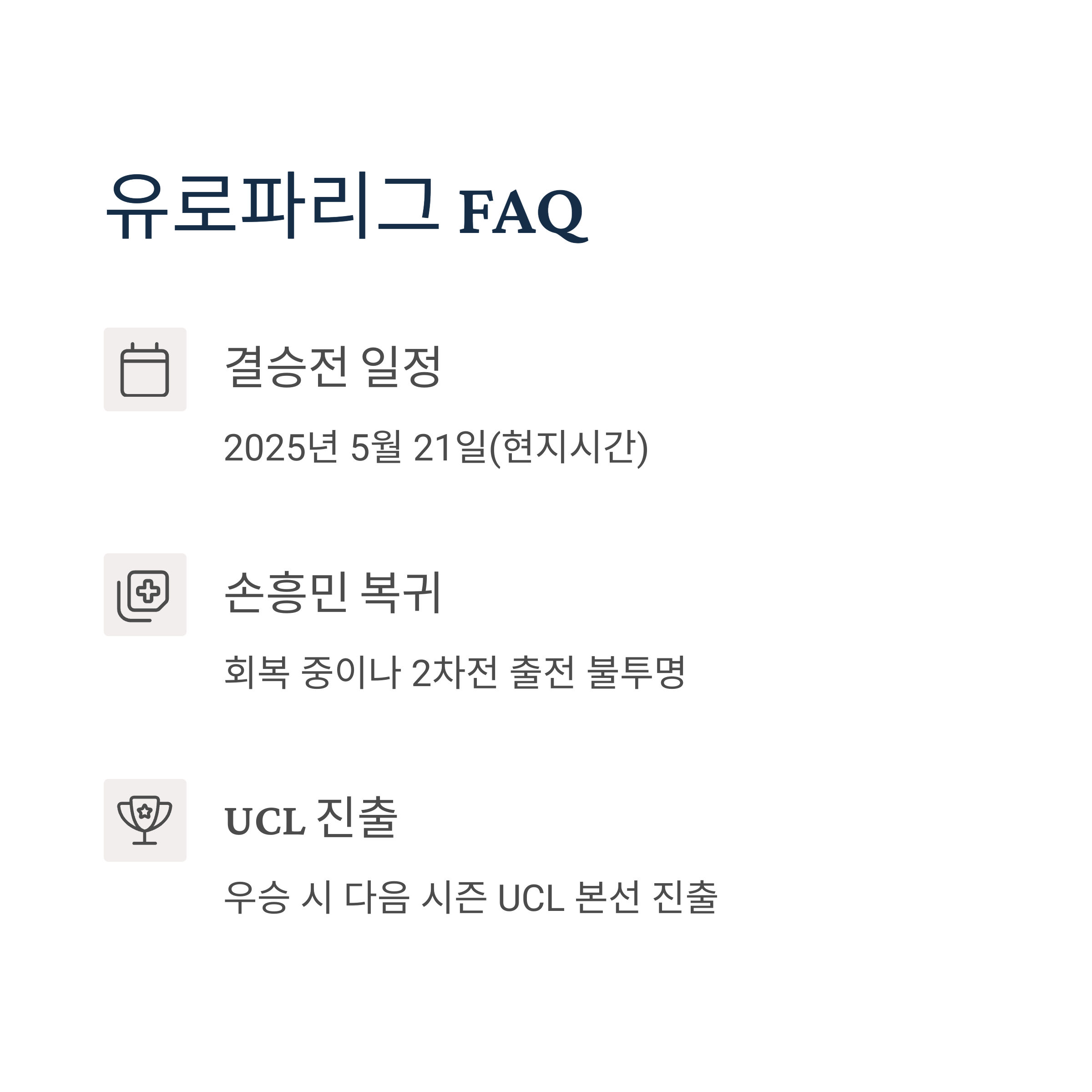 2025년 5월 21일(현지시간)에 열릴 예정입니다. - 손흥민 선수는 언제쯤 복귀할 수 있을까요?