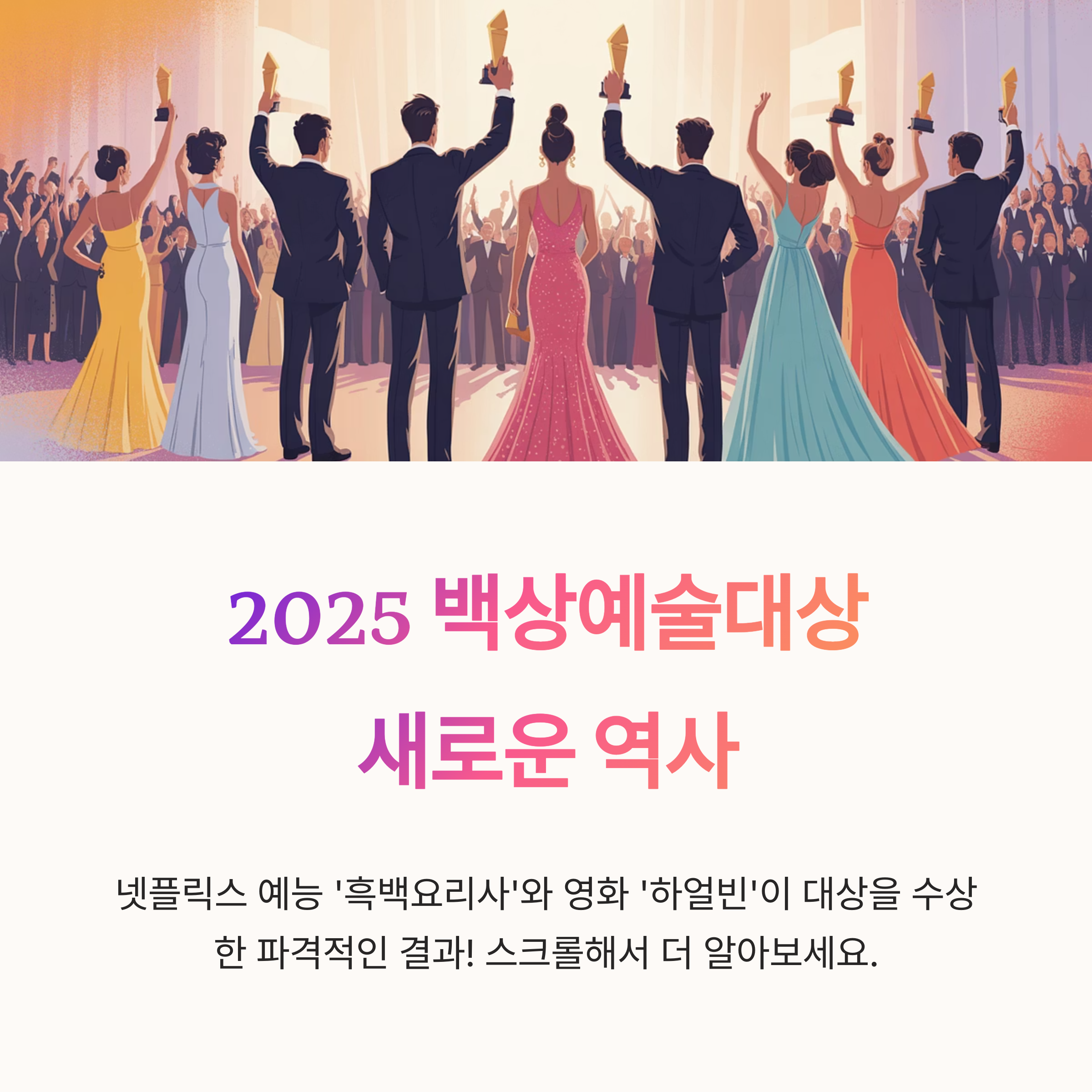 넷플릭스 예능 ‘흑백요리사’와 영화 ‘하얼빈’이 영예의 대상을 수상하며 백상예술대상이 새로운 역사를 썼습니다. 예능이 방송 대상, 촬영감독이 영화 대상을 받는 파격적인 수상이었죠. 👏
