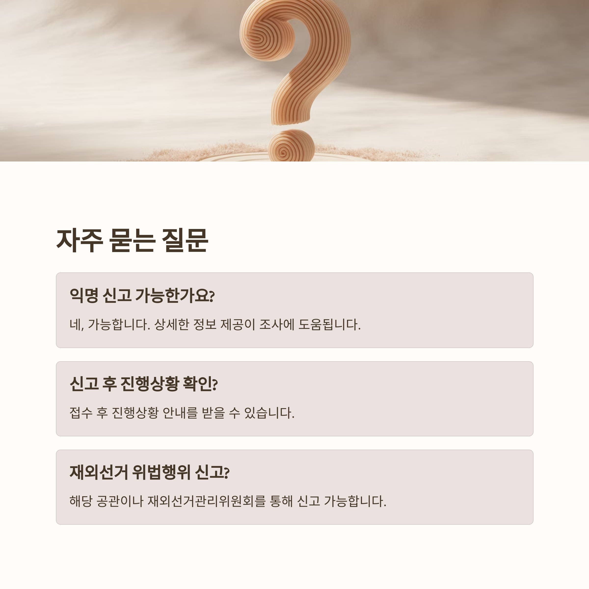 - 온라인 신고: 중앙선거관리위원회 위반행위 신고센터