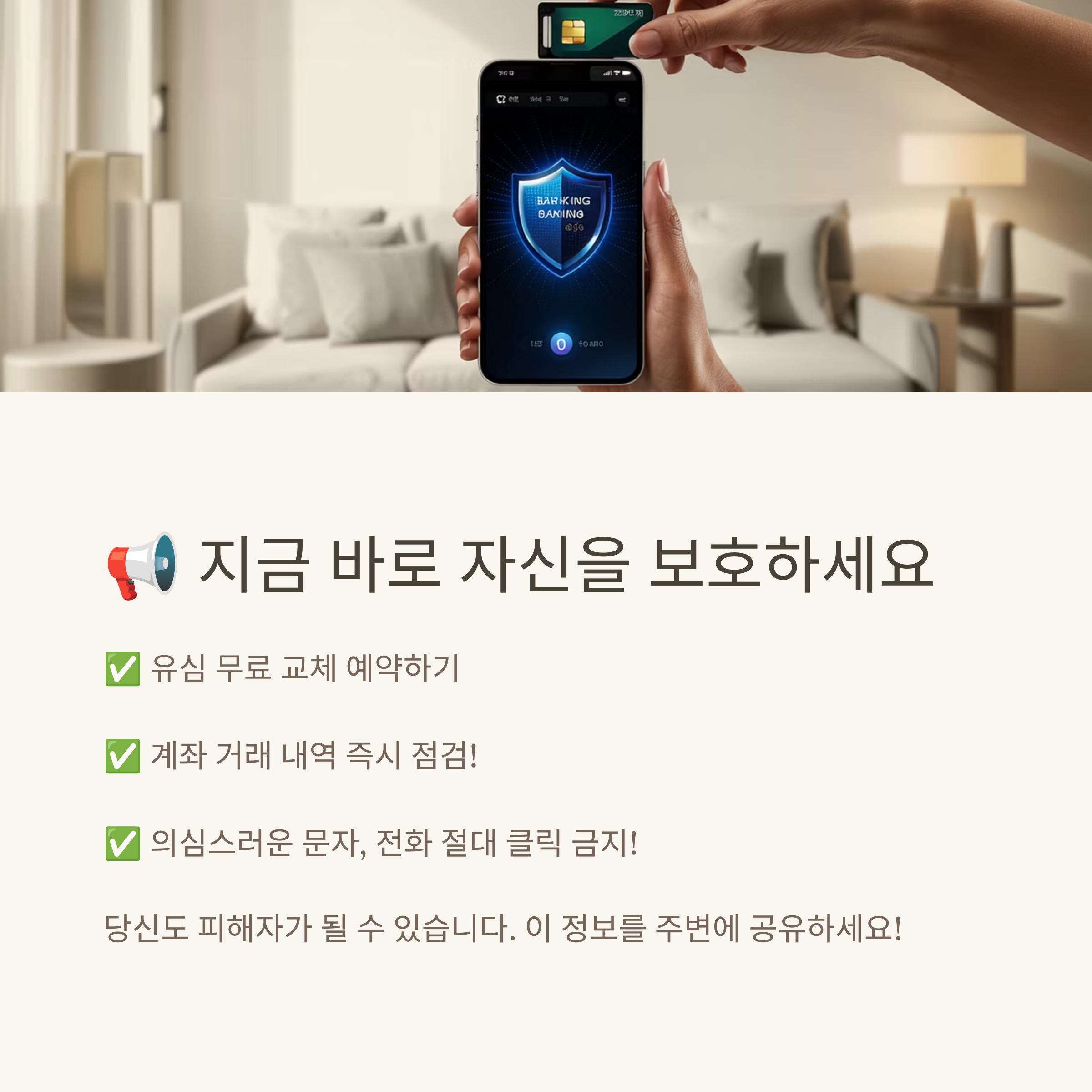 - ✅ 의심스러운 문자, 전화 절대 클릭 금지!
